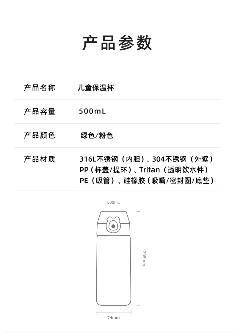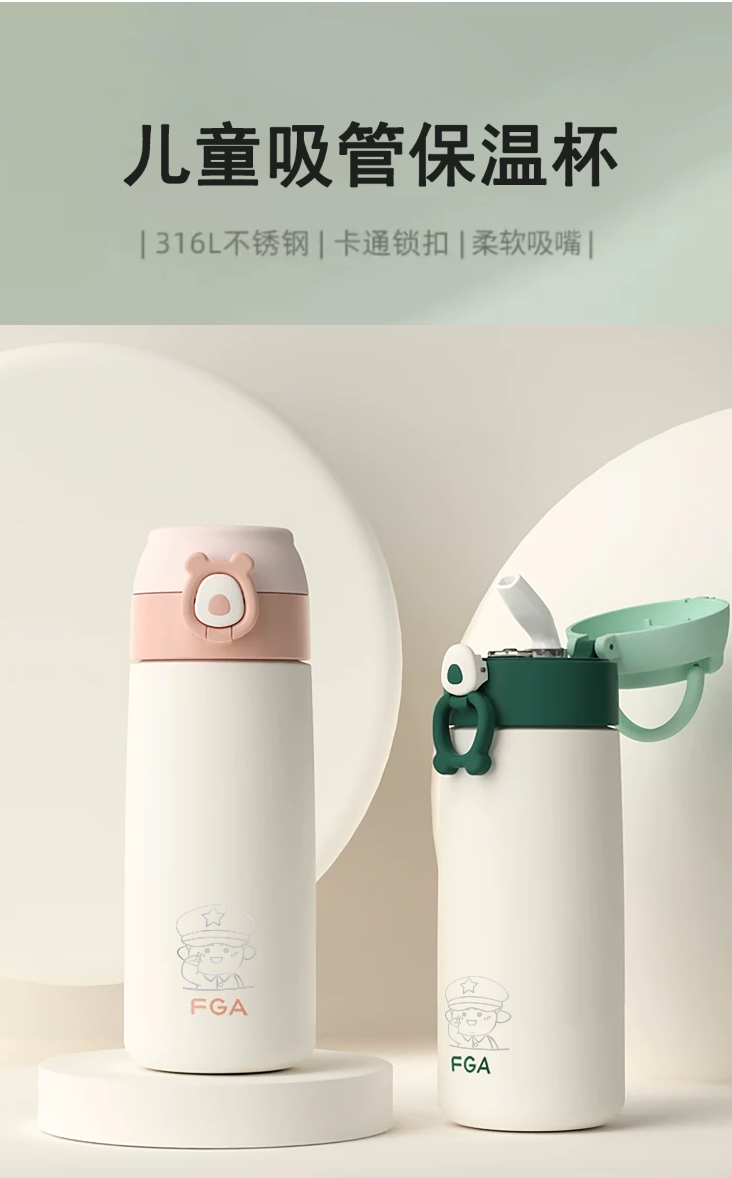 新款《棒娃娃》316L食品级不锈钢 带吸管儿童保温杯 直筒杯身 特制杯套 专为棒娃娃打造