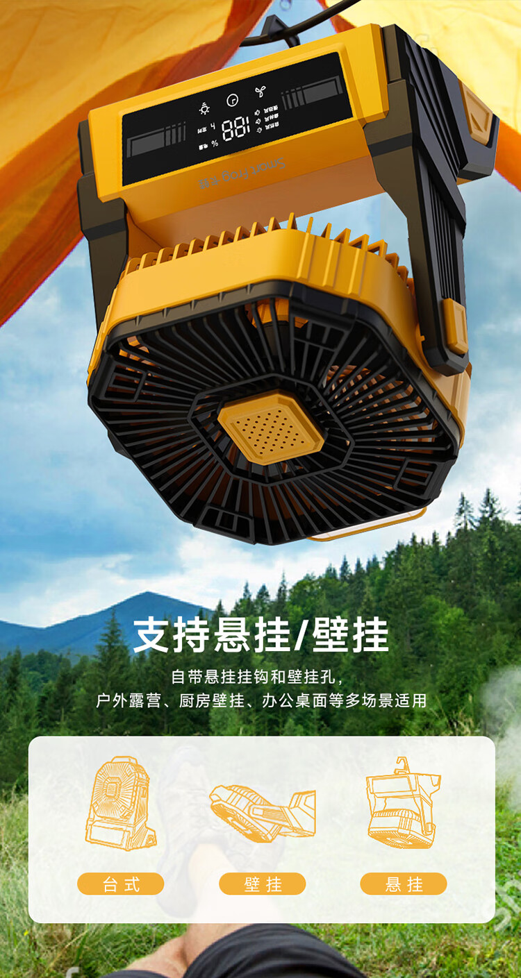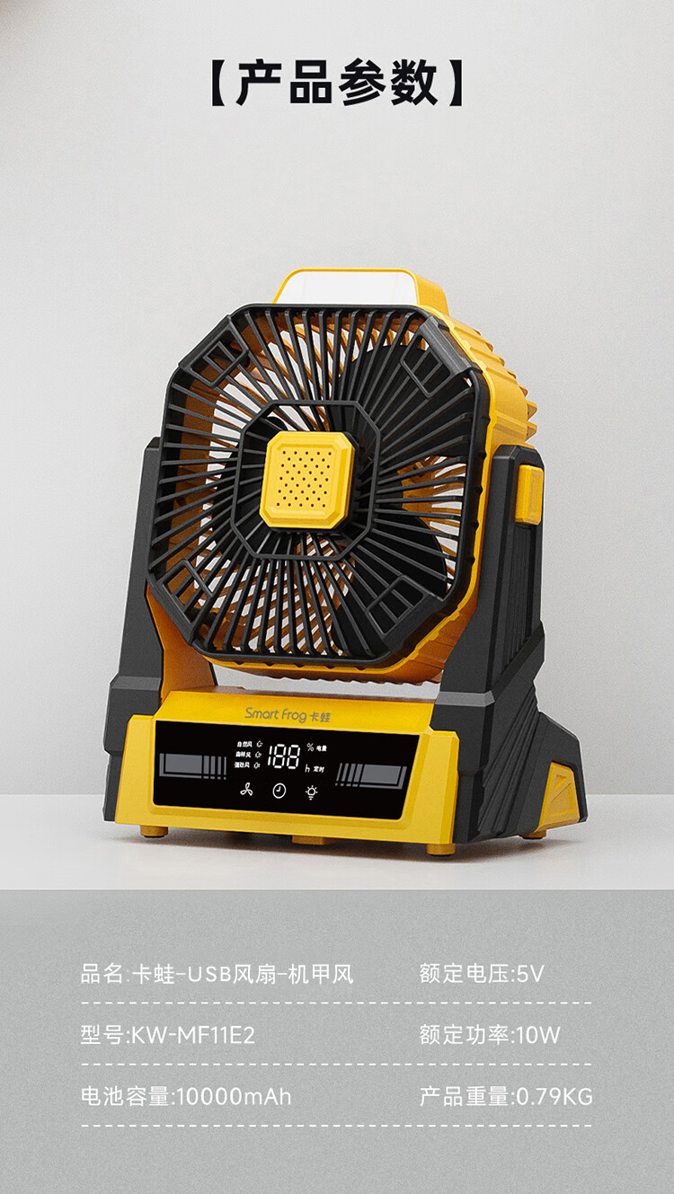 【小家电】卡蛙户外露营电风扇充电usb长续航钓鱼露营大风力降温风扇家用办公室桌面电风扇KW-MF11 HF