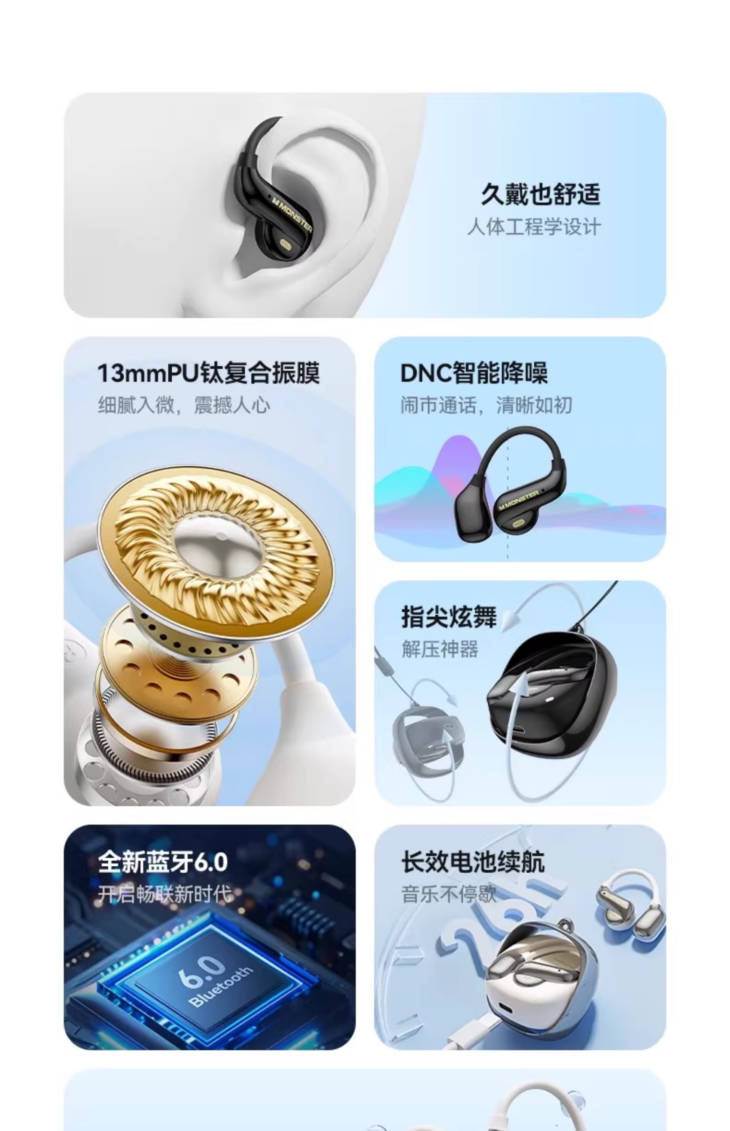 魔声AC390挂耳式蓝牙运动耳机,开放聆听新体验,久戴也舒适【G】