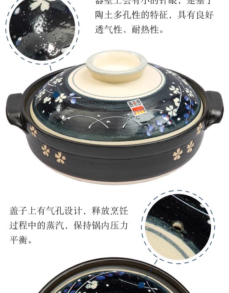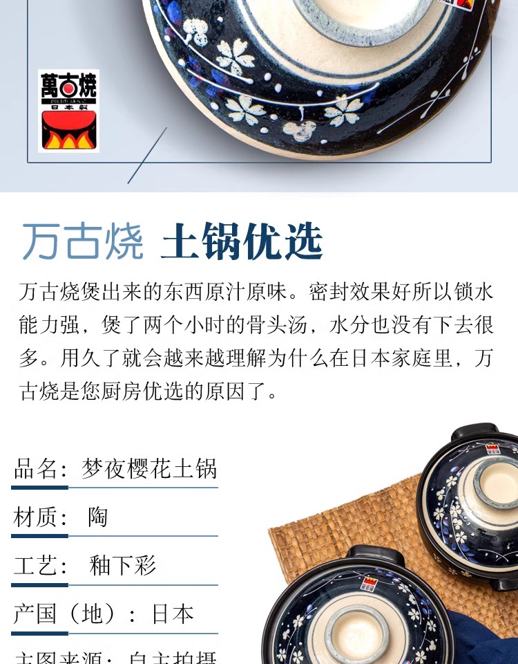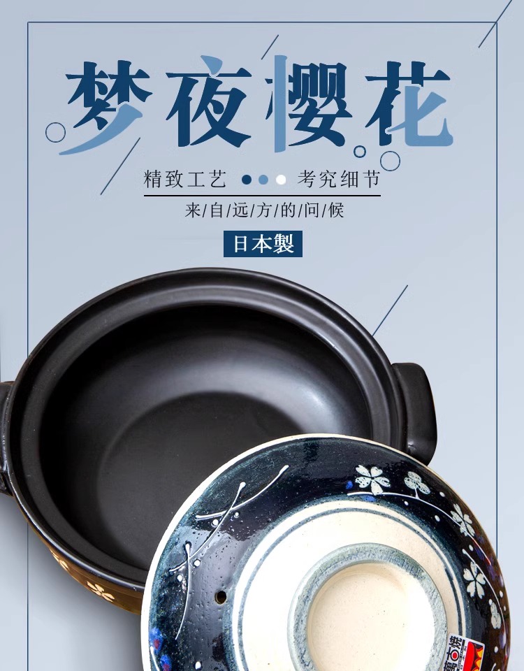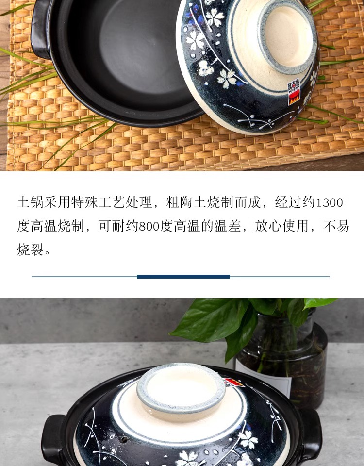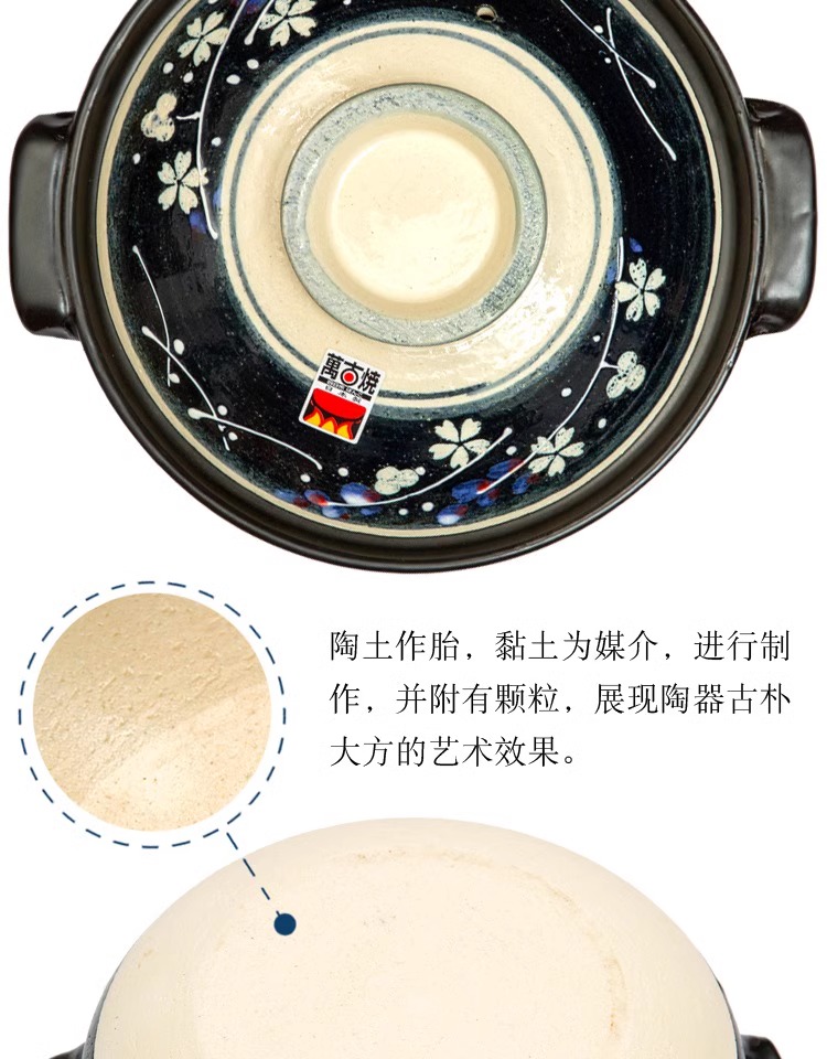 日本进口万古烧梦夜樱花土锅陶瓷砂锅家用煲汤锅炖锅饭锅梦夜樱花陶锅8号 2.1L