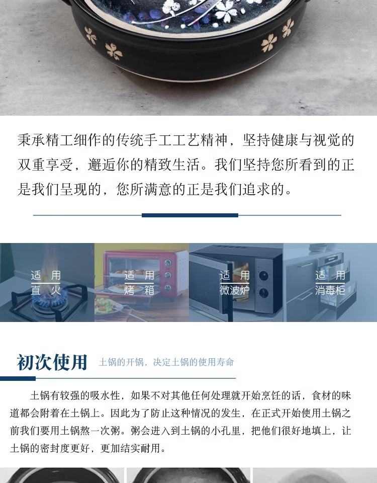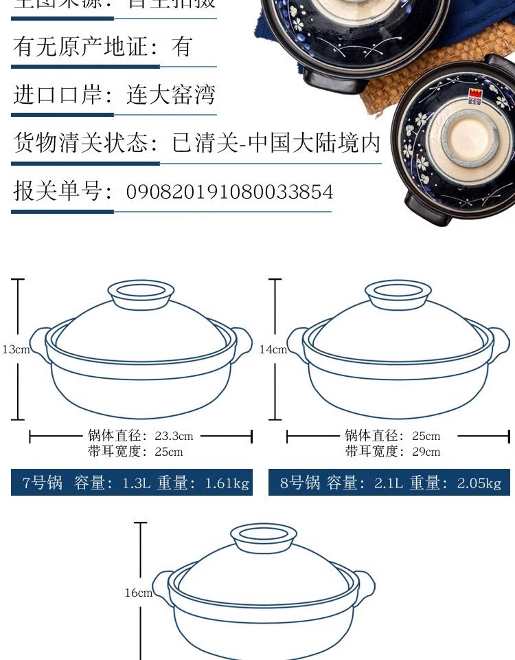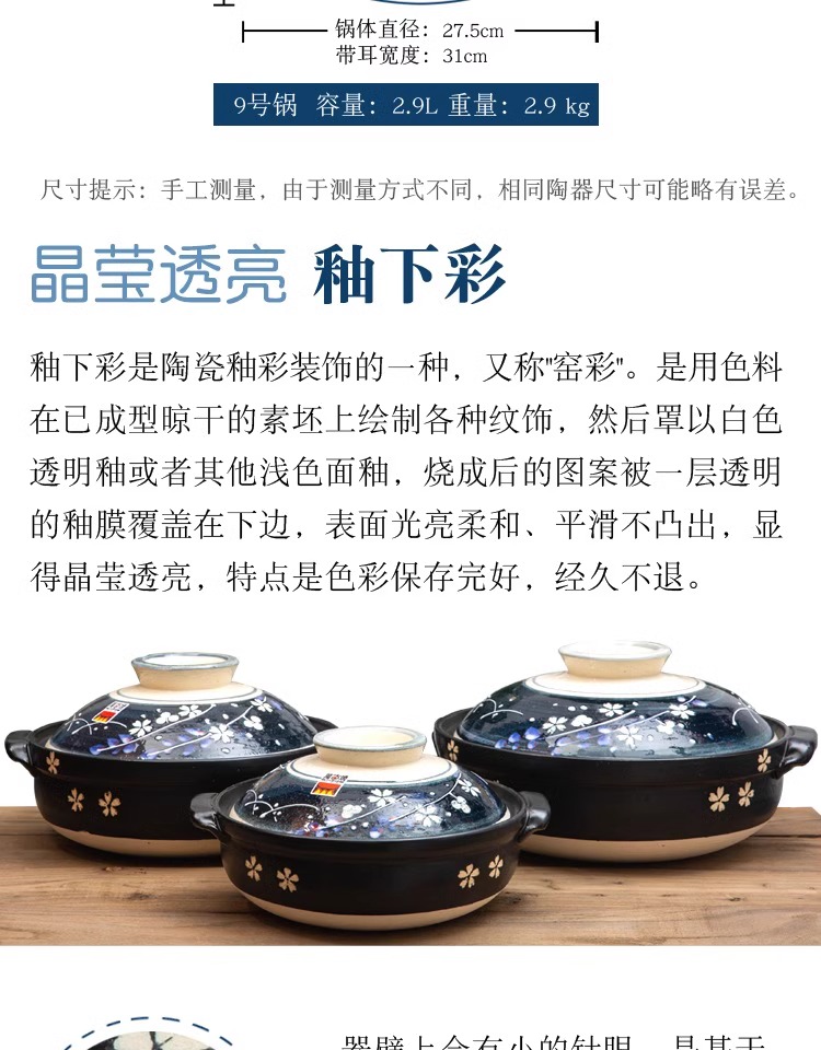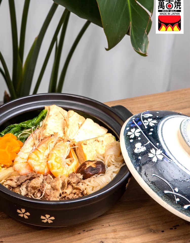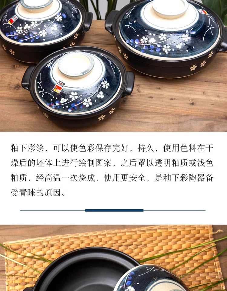 日本进口万古烧梦夜樱花土锅陶瓷砂锅家用煲汤锅炖锅饭锅梦夜樱花陶锅8号 2.1L