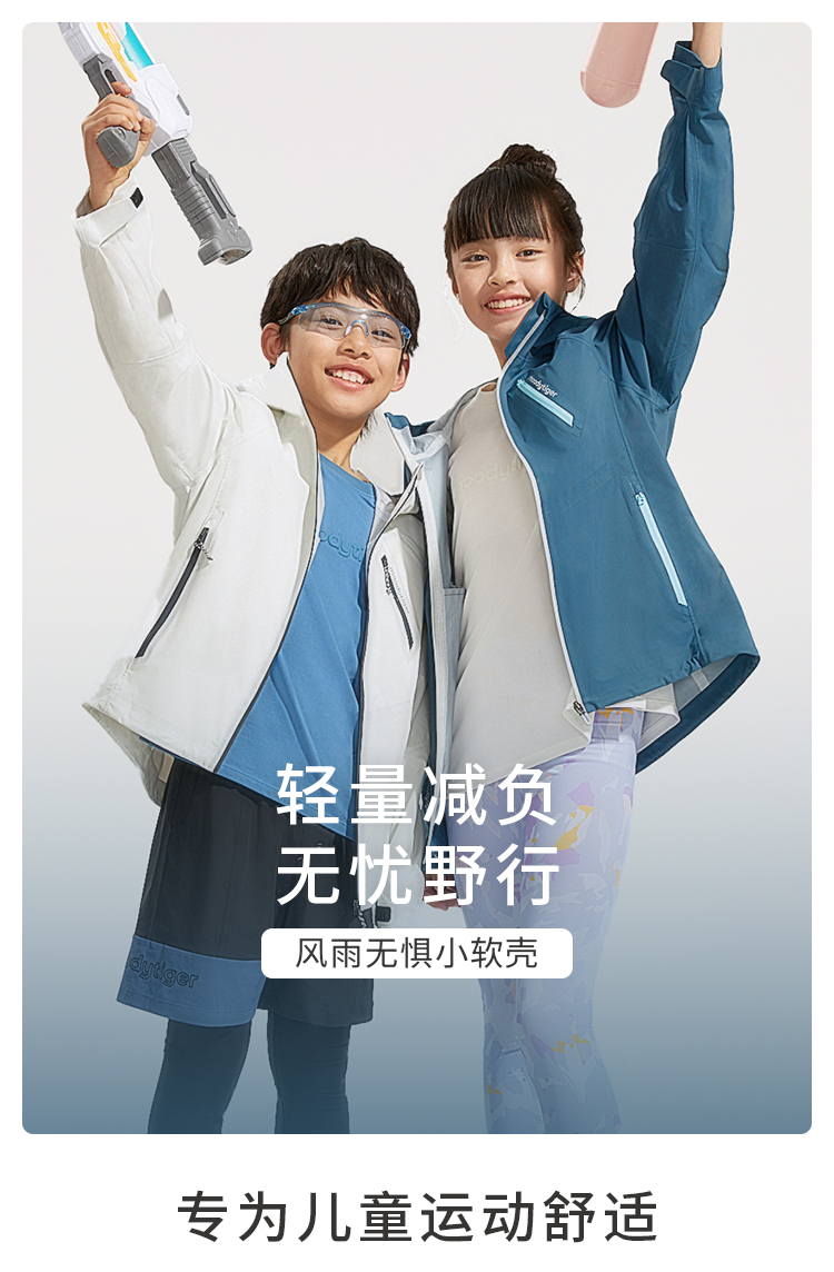 【24年春新品】moodytiger儿童软壳冲锋衣24年春季新品防水户外运动外套41514002