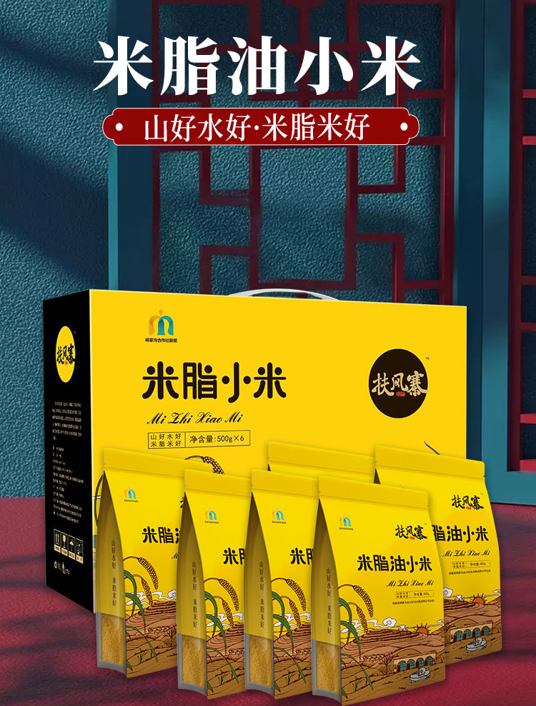 【推荐】正宗陕北农家新米脂油小米 黄土高原种植 500g*6袋礼盒装
