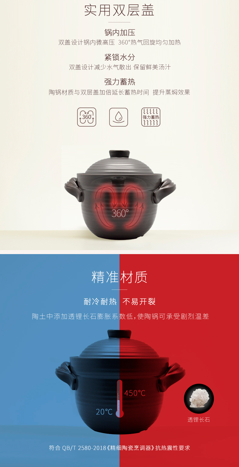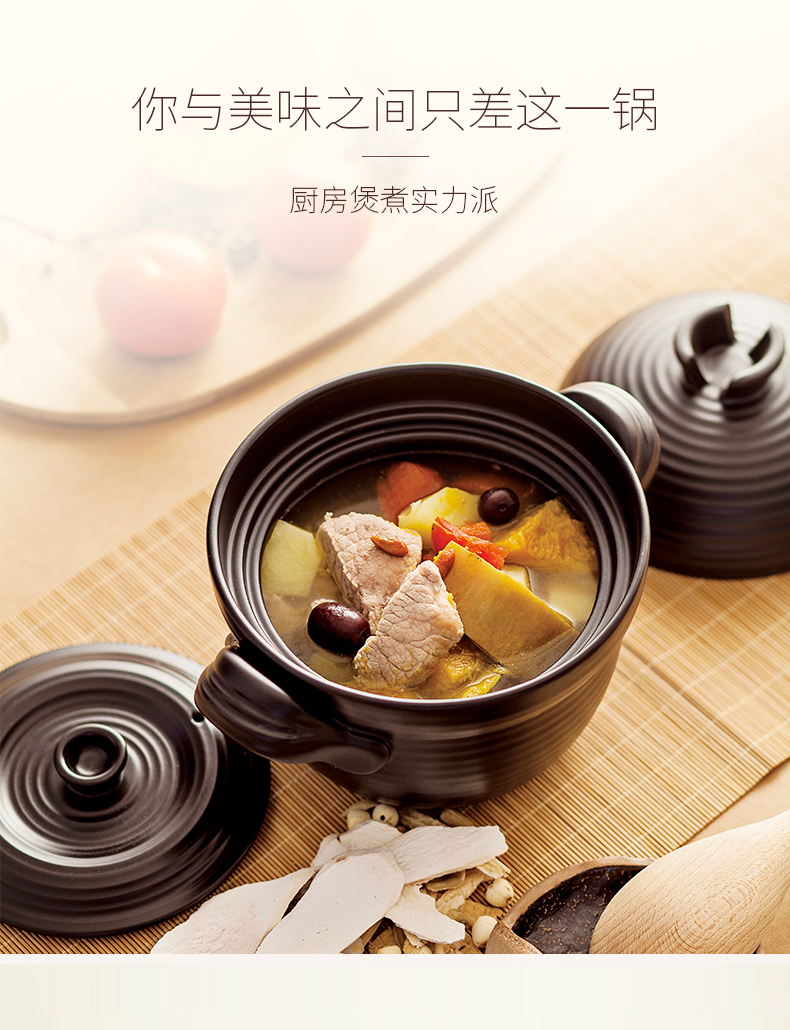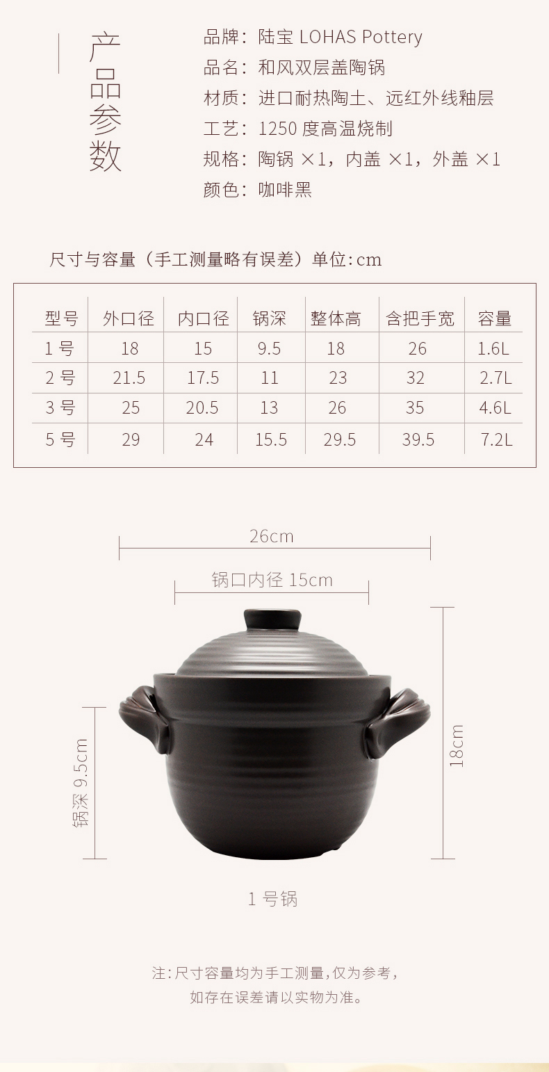陆宝-和风双盖陶锅家用煲汤炖煮陶瓷锅