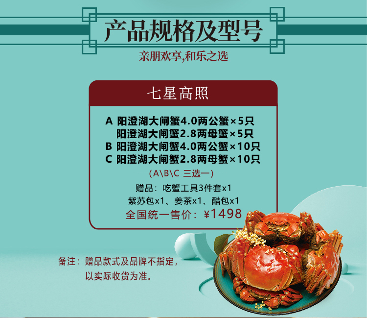 【礼券】阳澄湖七星高照10只装 鲜活大闸蟹 (A/B/C三选一)