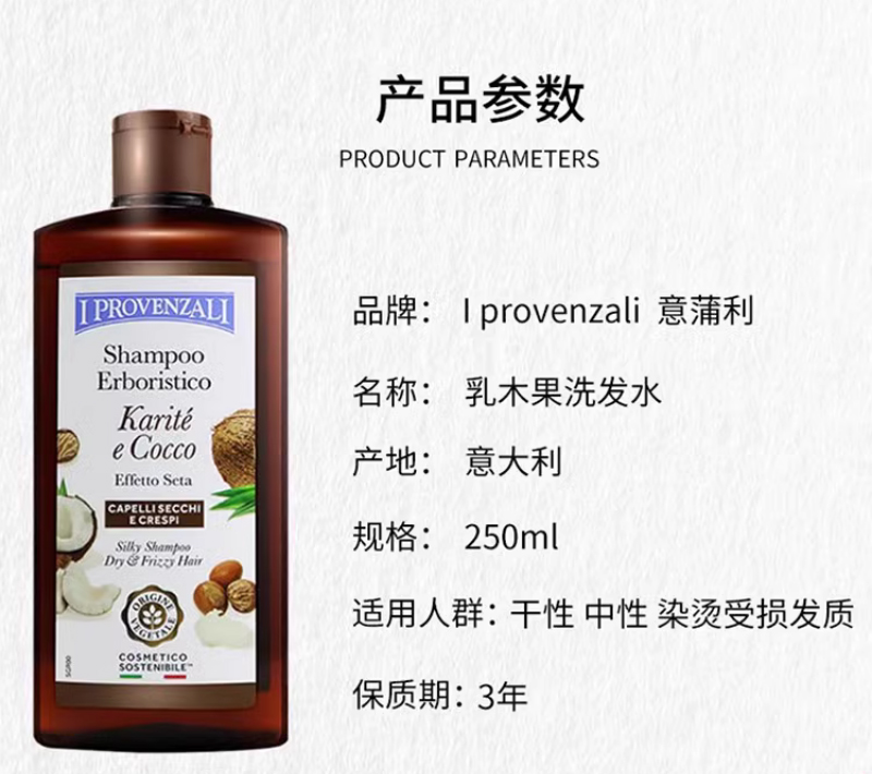 【品名】 I PROVENZALI意蒲利乳木果丰盈修复洗发水250ml+润发乳200ml