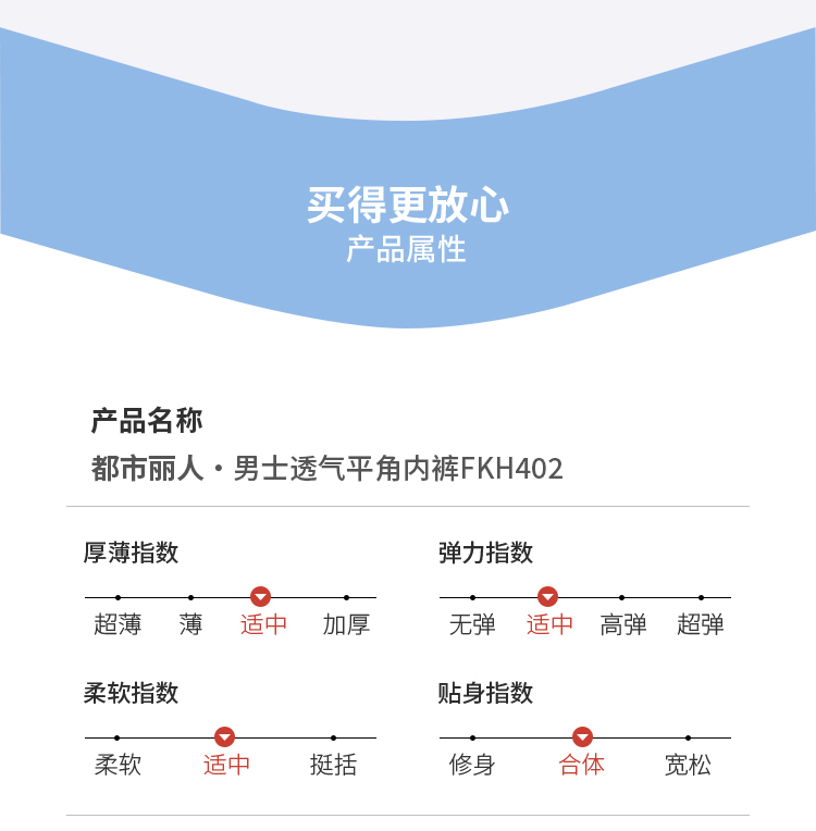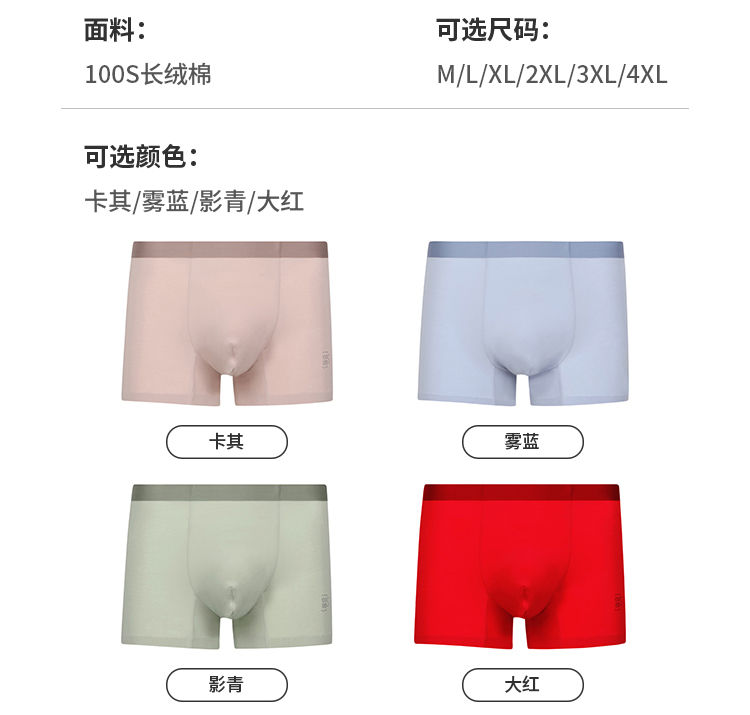 都市丽人棉平角100S长绒棉铂金舒适平角裤FKH402