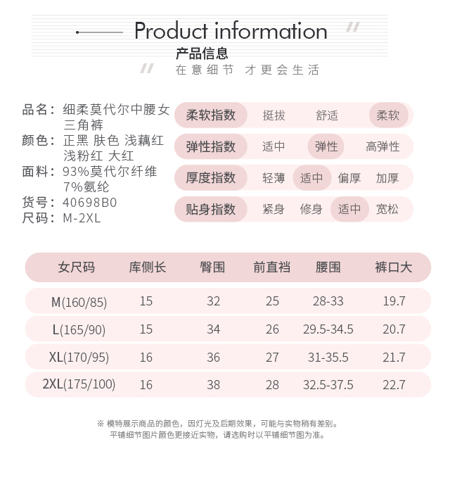 Threegun三枪 【细柔莫代尔】中腰女士三角内裤(1条装)-40698B011