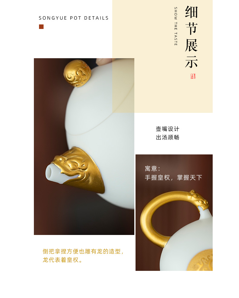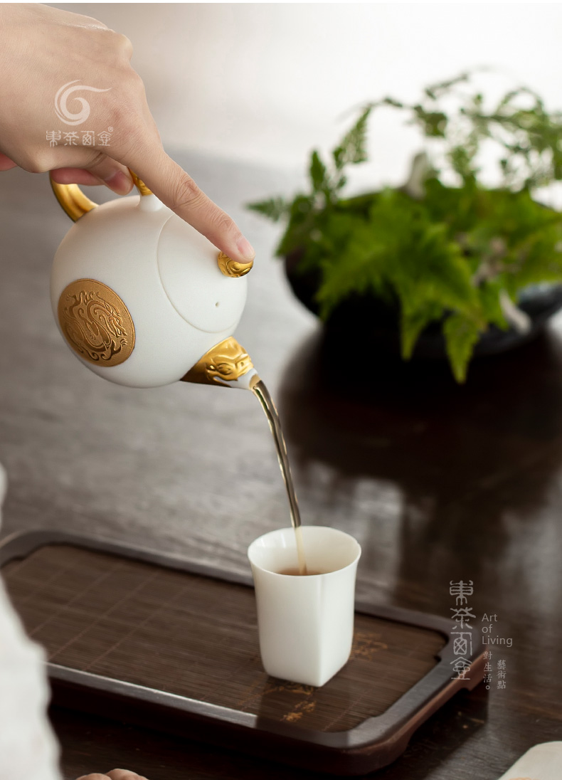 千里江山 6头+木托盘 茶具套装 手绘羊脂玉新款整套功夫茶具家用德化白瓷客厅泡茶办公室会客盖碗茶杯 茶道 茶具