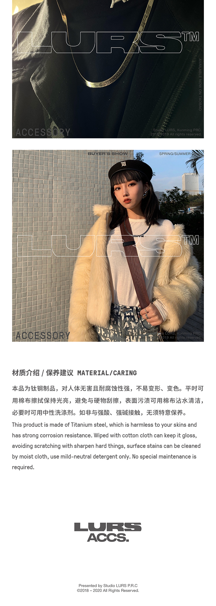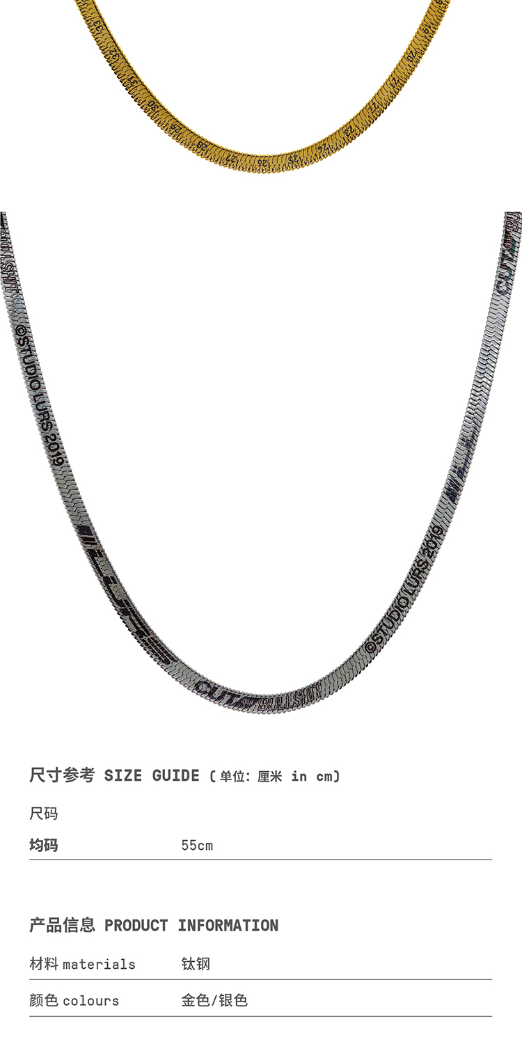 LURS官方店铺20新款原创设计国潮钢尺蛇骨项链男ins嘻哈蹦迪网红
