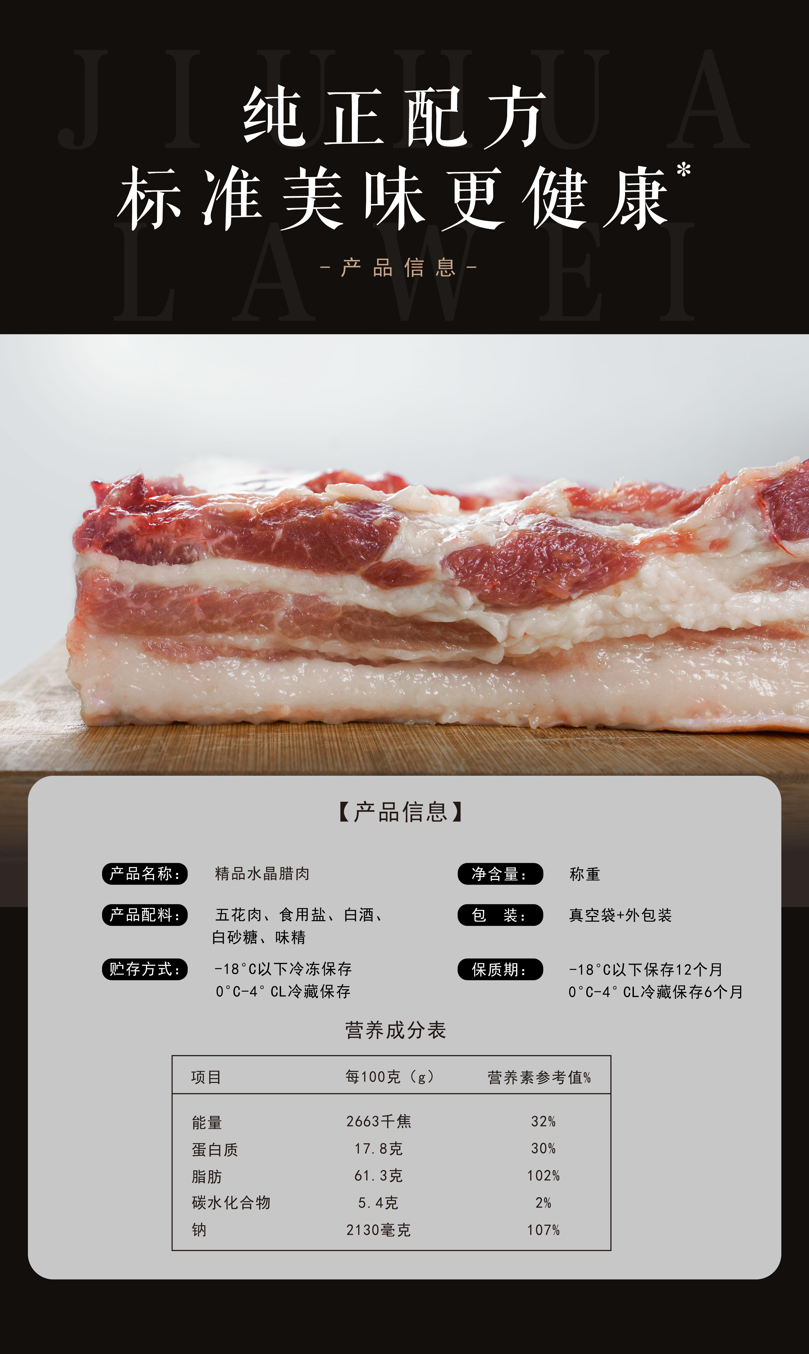 【产品名称】「金九芙」水晶腊肉 2袋*500g
