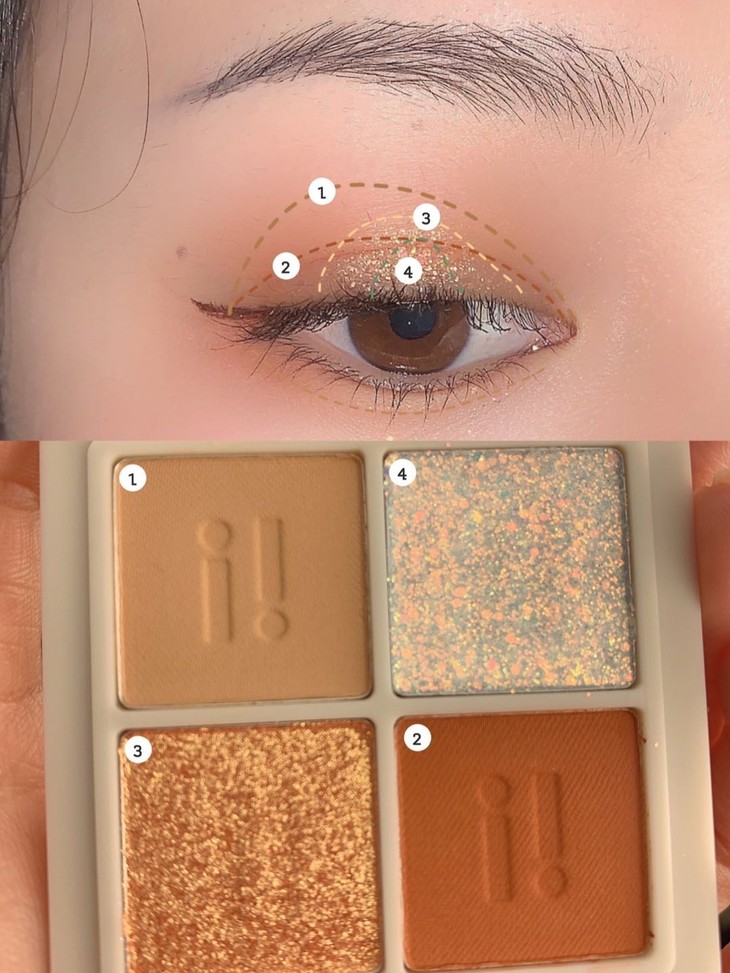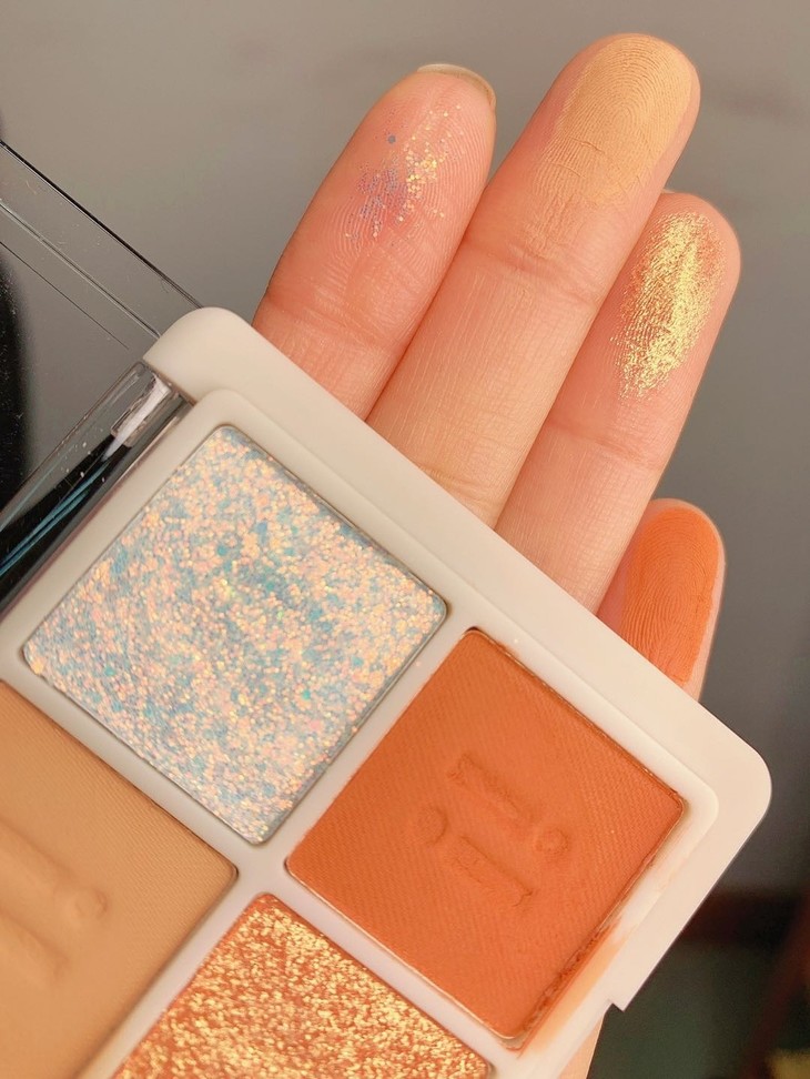 细闪️当高光提亮!裸蜜桃色当腮红也很轻透~深色加深眼尾当眼线眼睛更深邃~