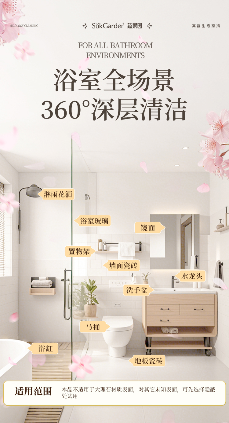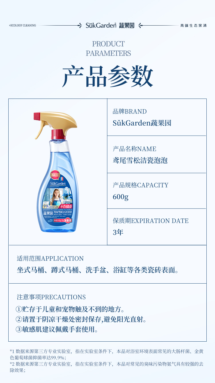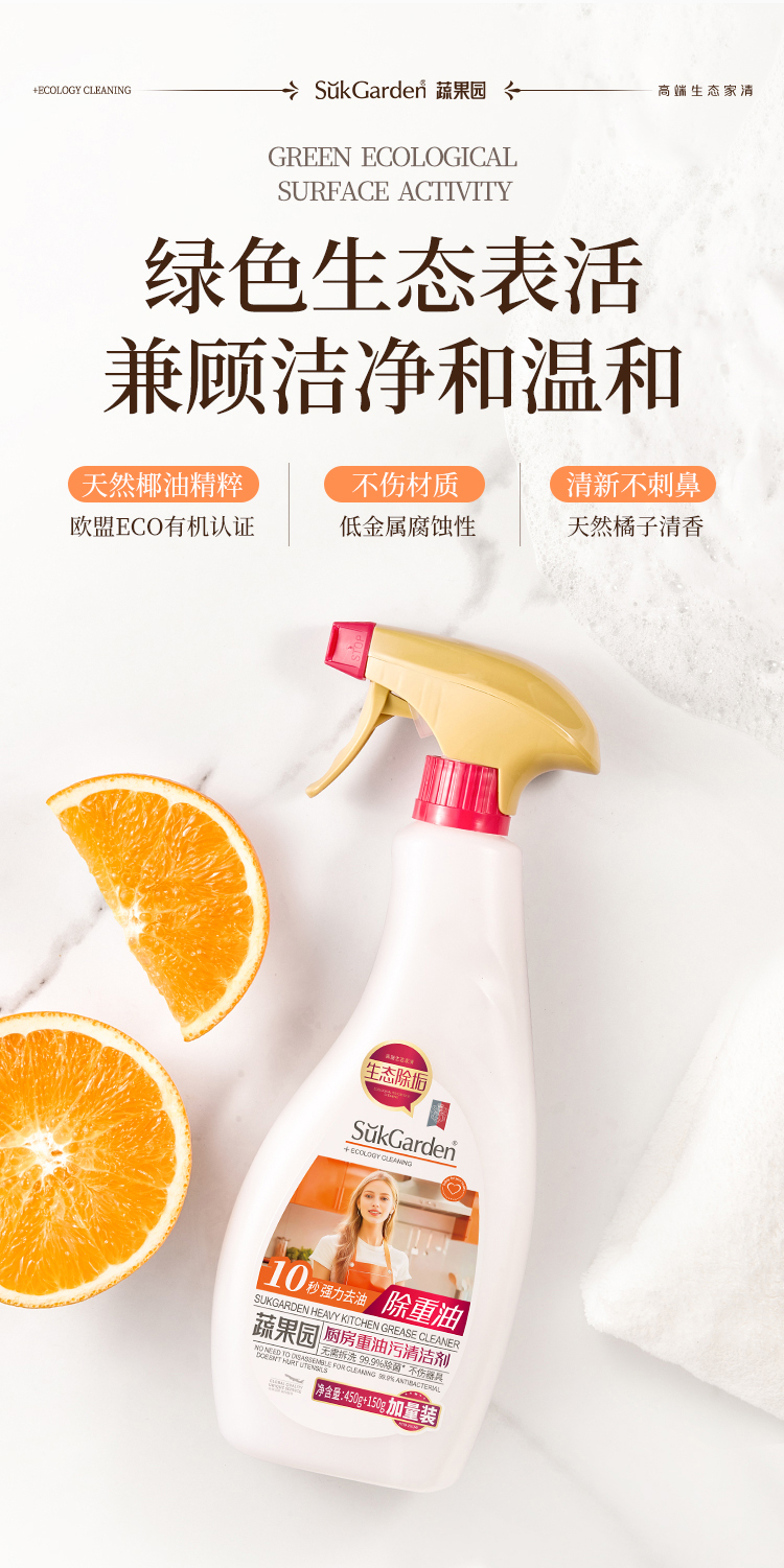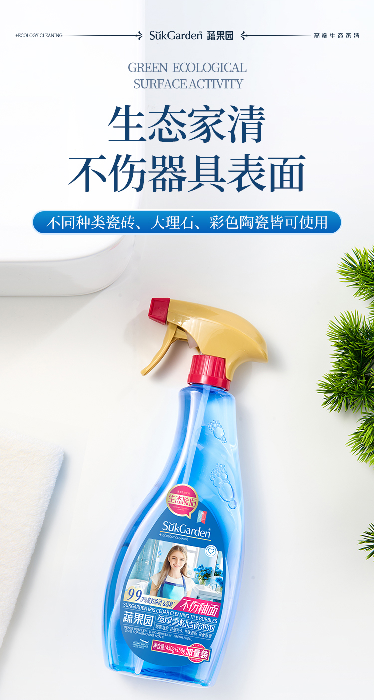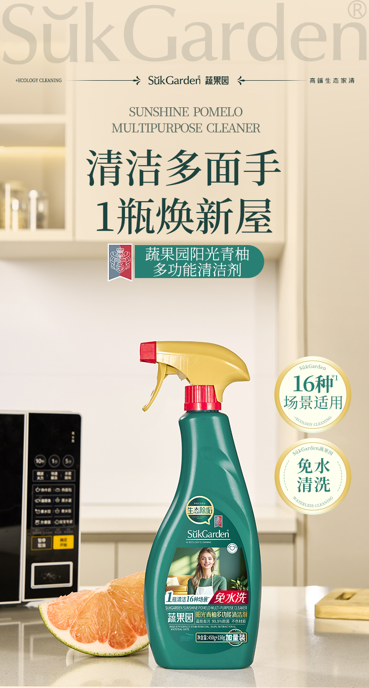【全屋清洁】69.9元得4瓶 蔬果园清洁剂600g/瓶 厨房油污+浴室+瓷砖+多功能 全屋清洁一套搞定