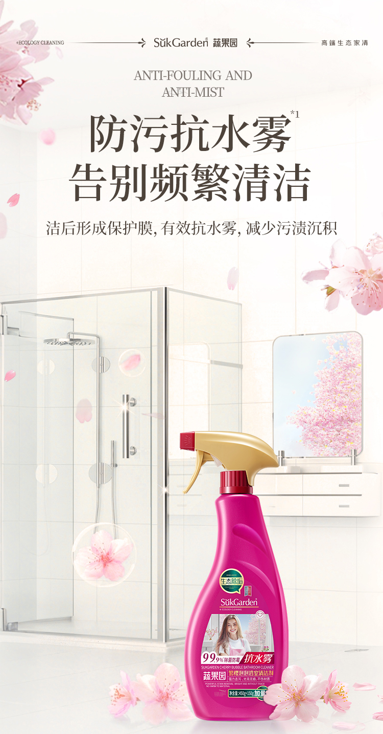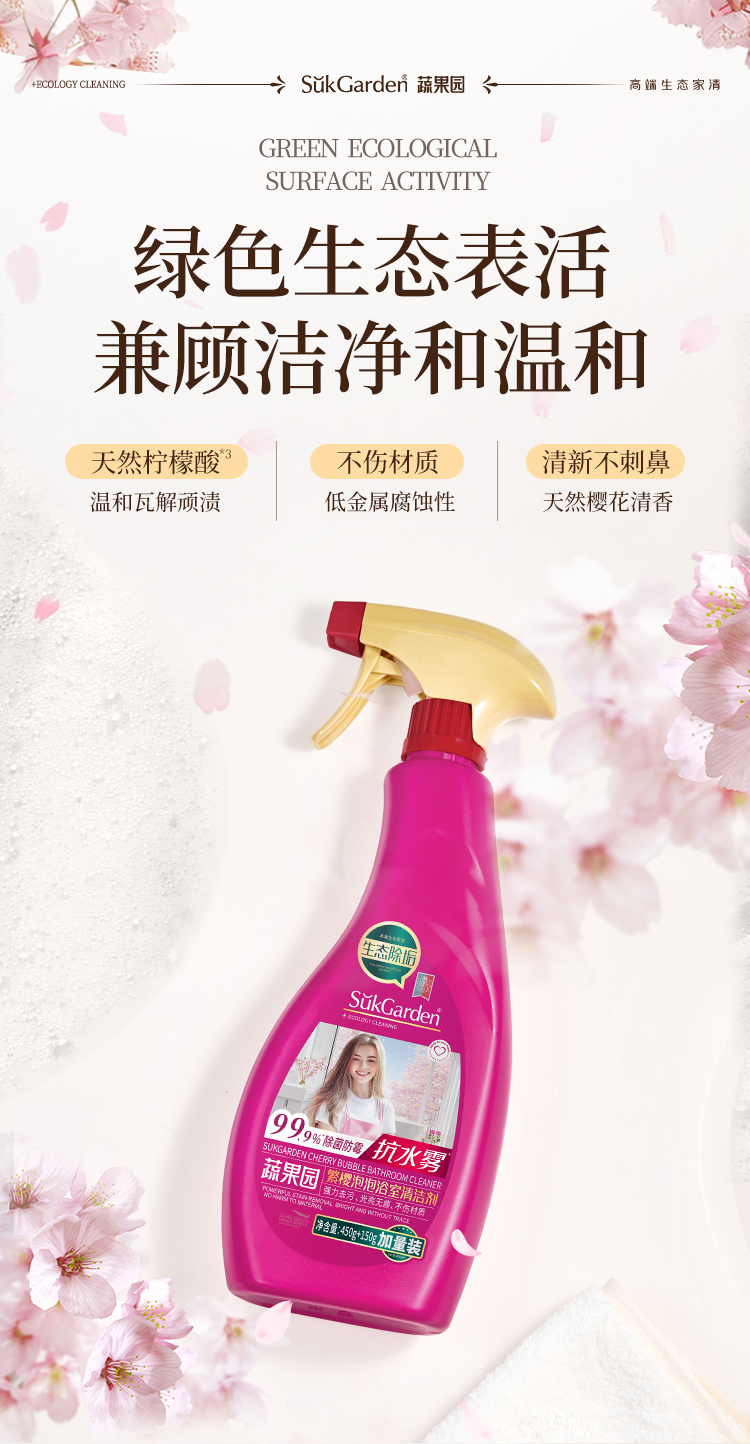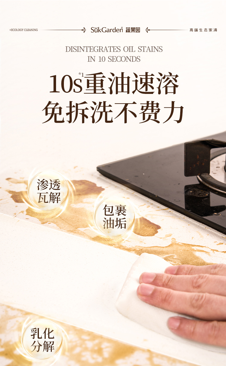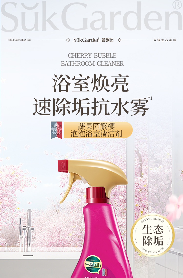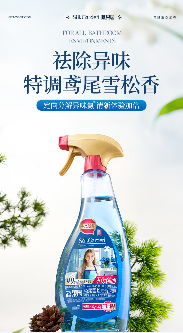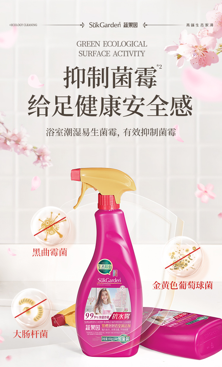 【全屋清洁】69.9元得4瓶 蔬果园清洁剂600g/瓶 厨房油污+浴室+瓷砖+多功能 全屋清洁一套搞定