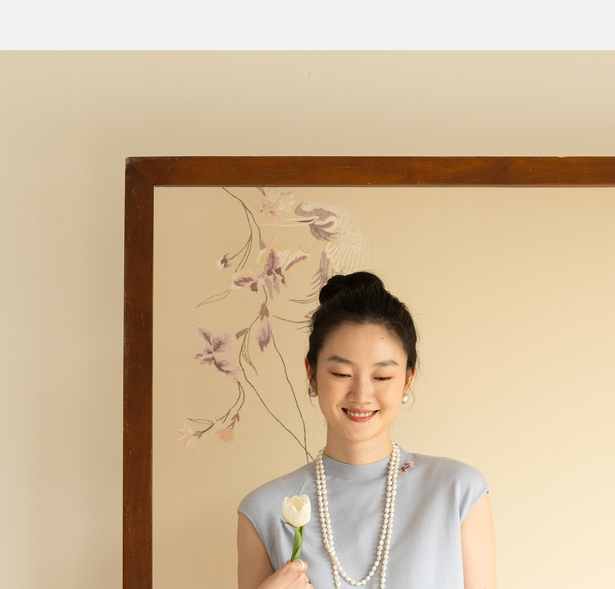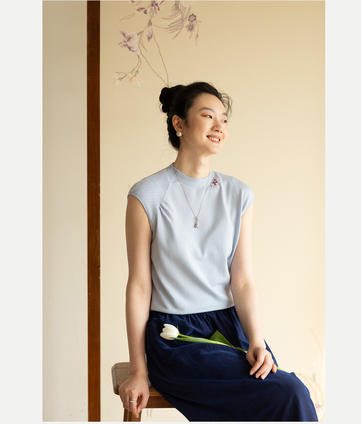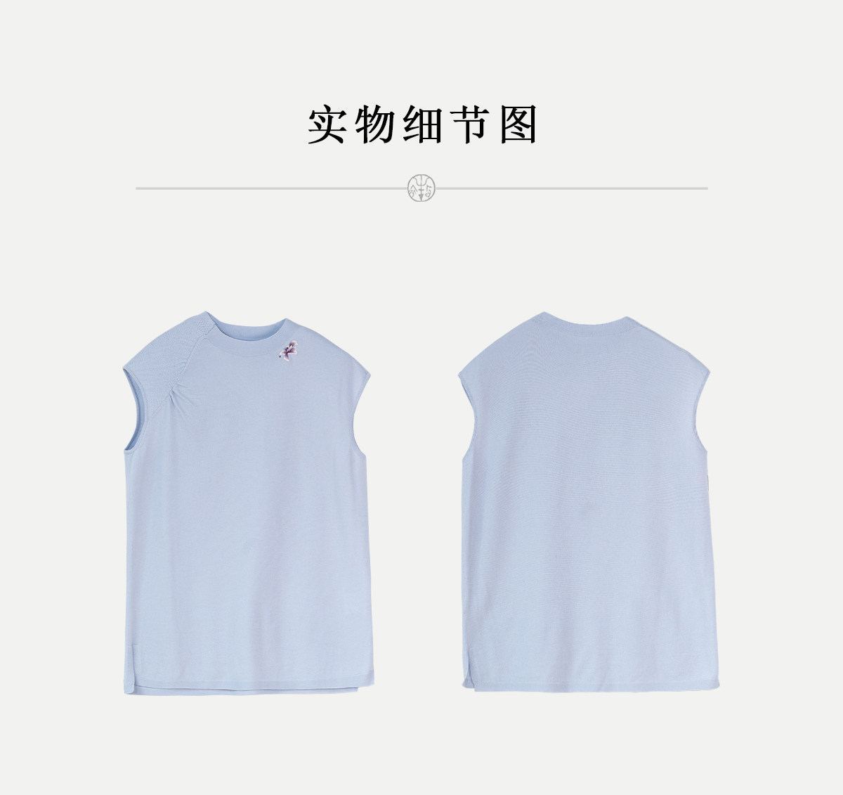 牧衣游原创 纯羊毛毛织手工刺绣毛衣新款通勤简约无袖上衣 逐月