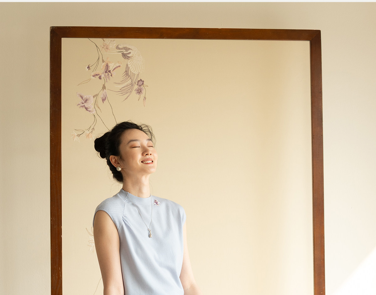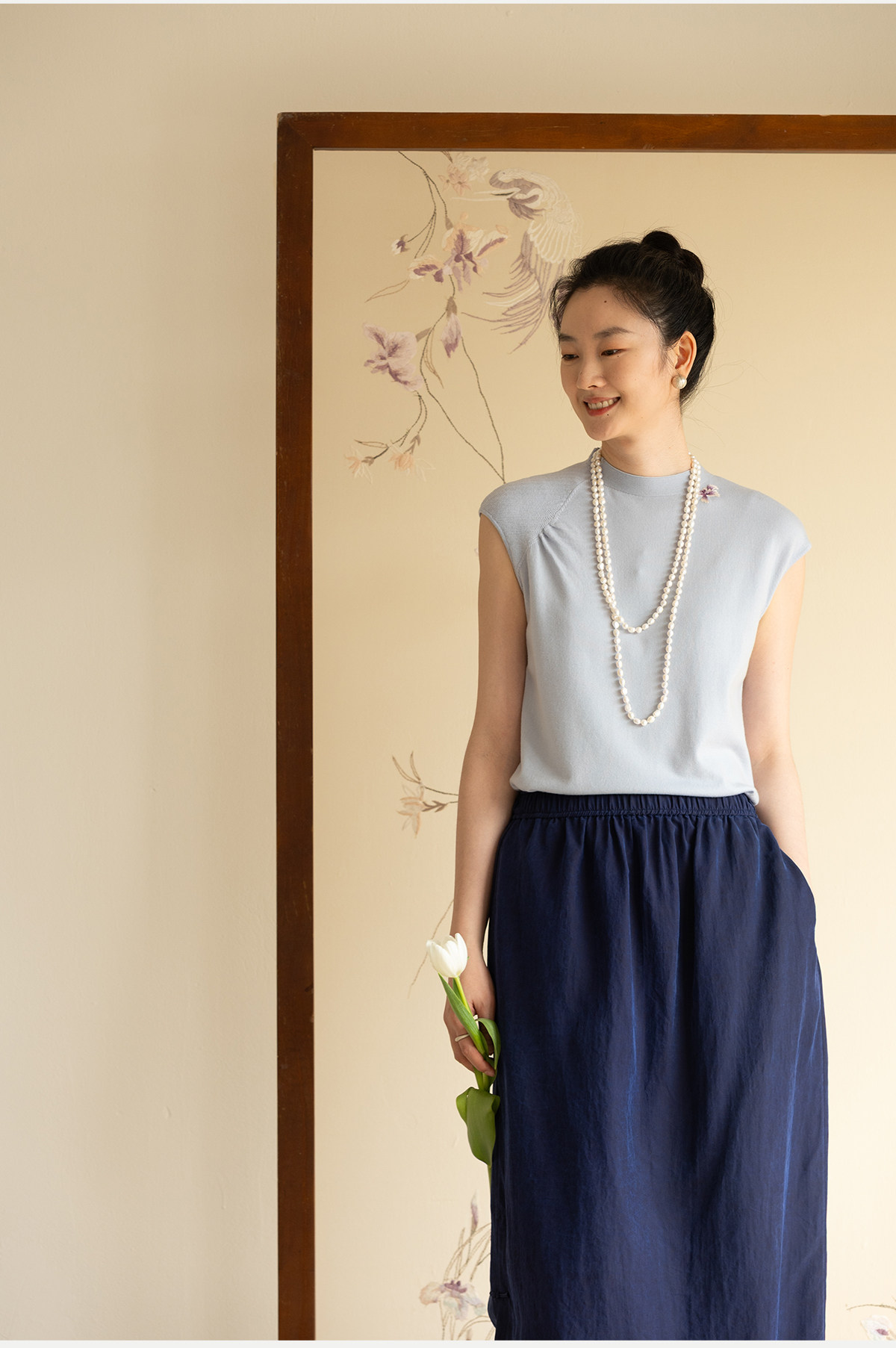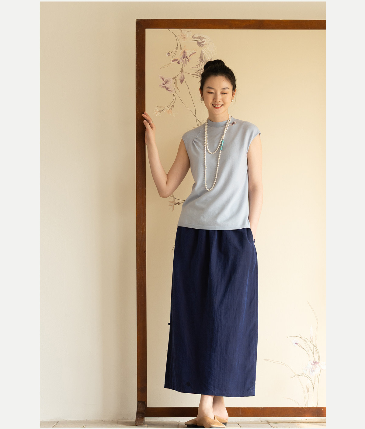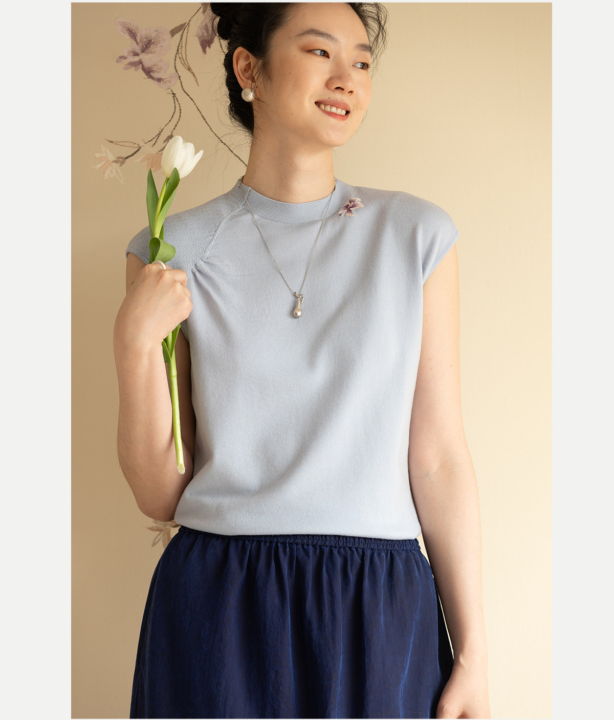 牧衣游原创 纯羊毛毛织手工刺绣毛衣新款通勤简约无袖上衣 逐月