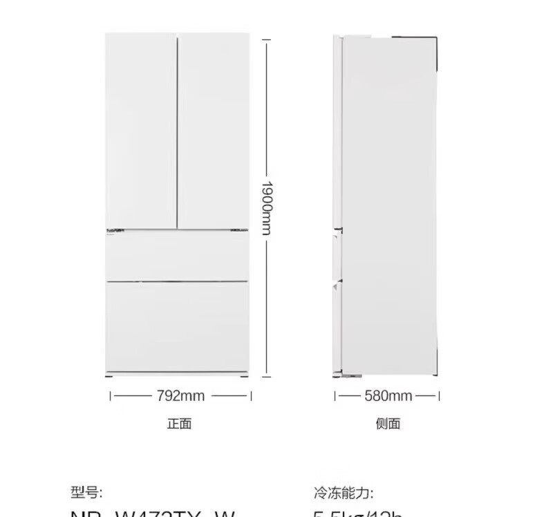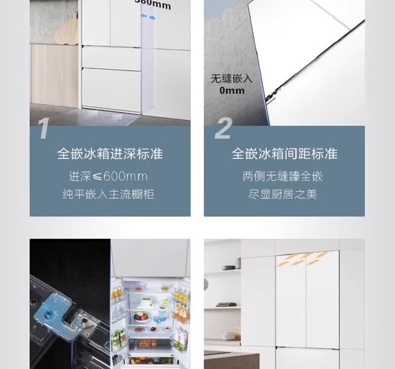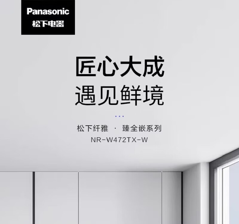 松下(Panasonic)NR-W472系列 58cm超薄嵌入冰箱 变频风冷 纳诺怡X净味除菌 超声波加湿 双循环零嵌入 钢化玻璃面板 NR-W472TX-W 晶钻白 四门玻璃 无制冰