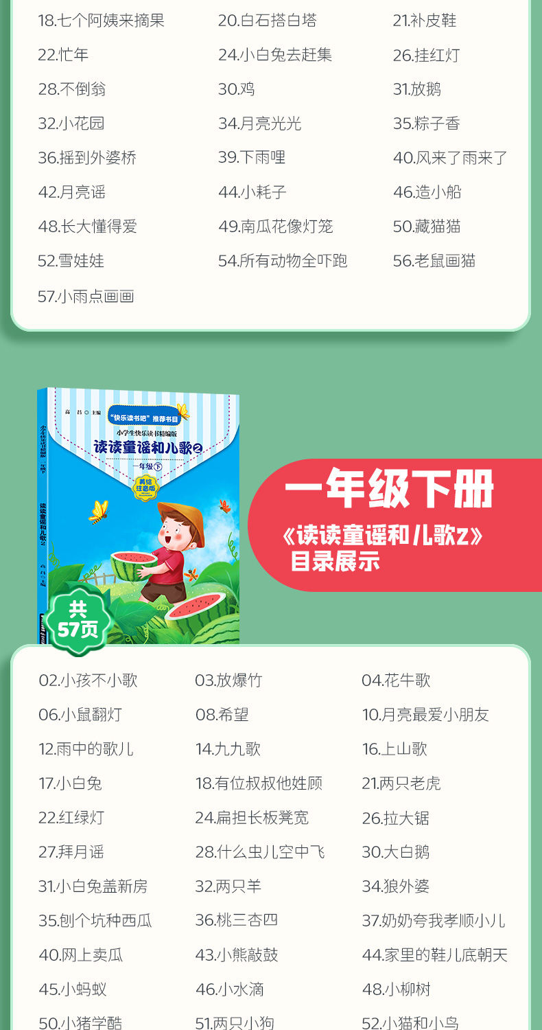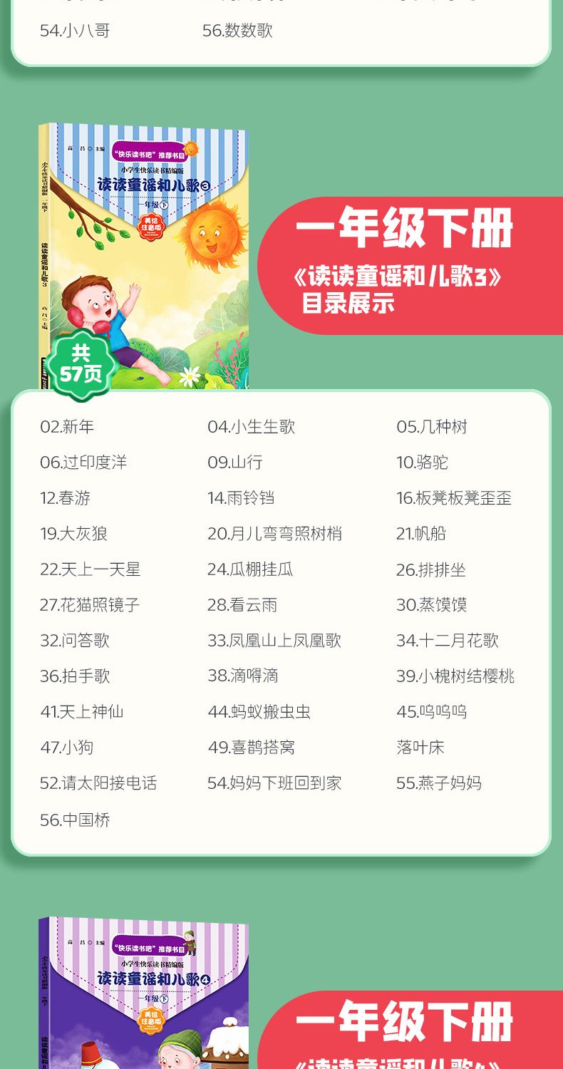 【福利】快乐读书吧小学生人教版一二年级上册下册同步读读童谣与儿歌注音