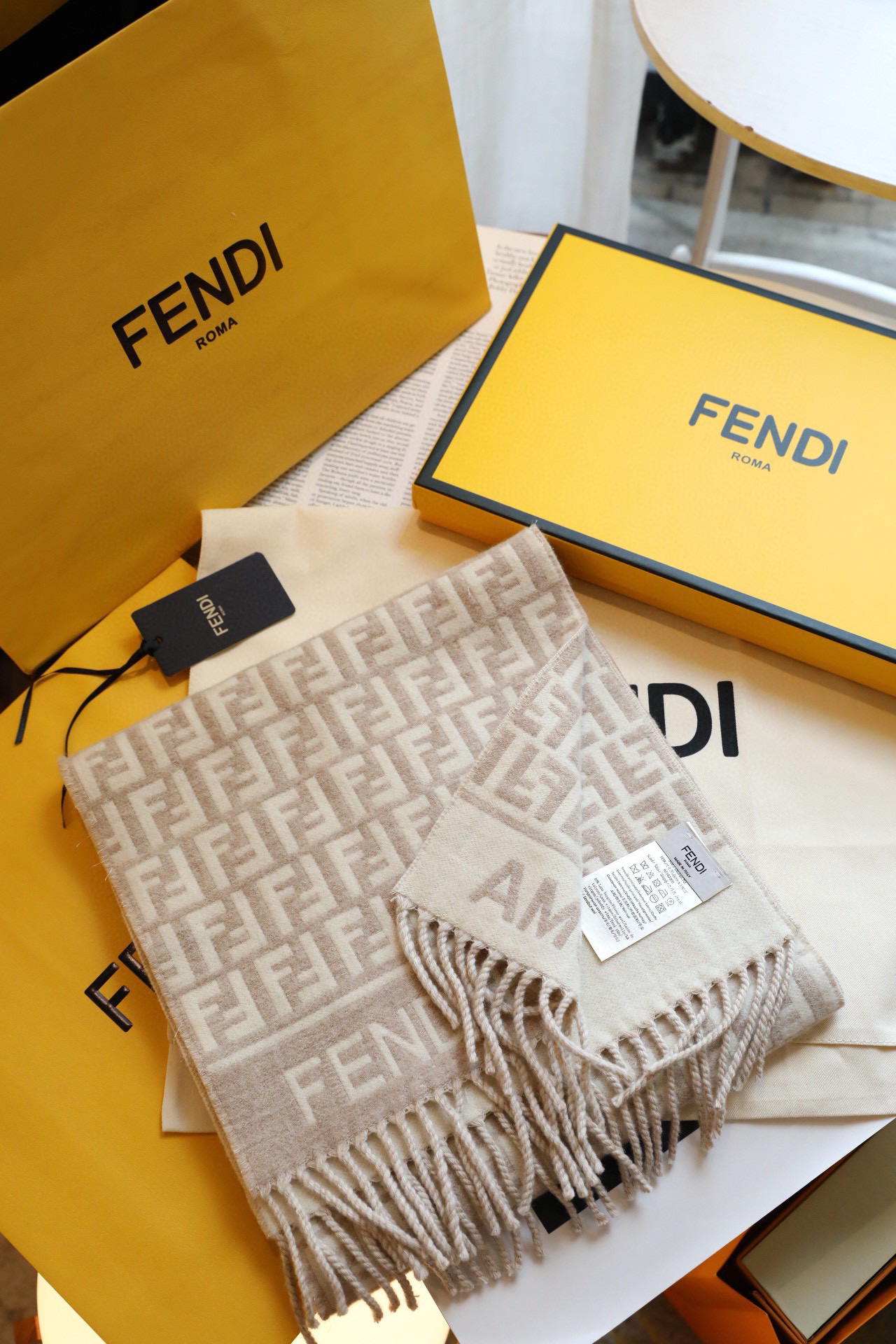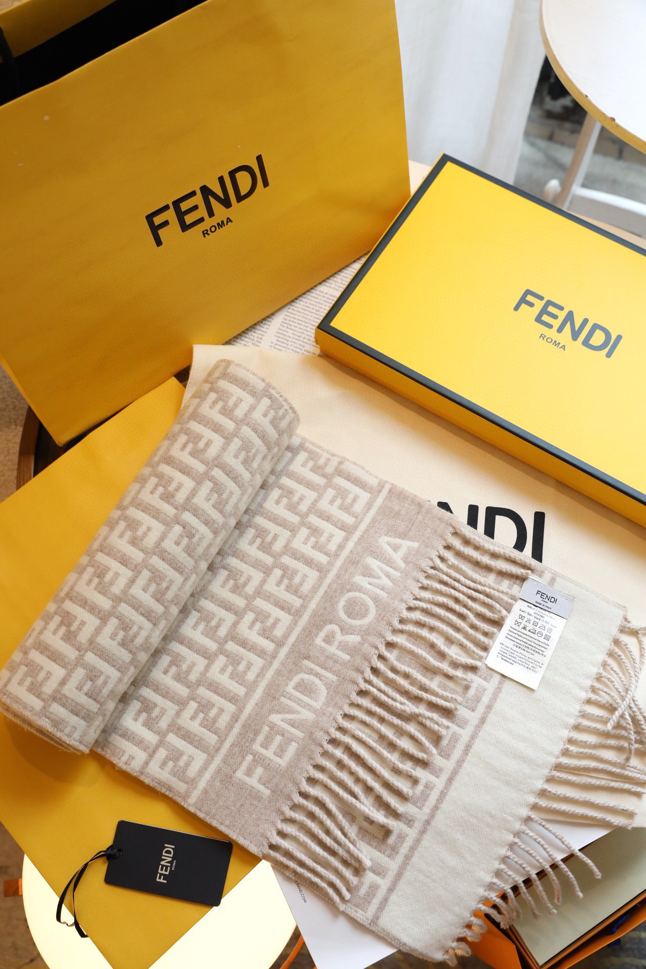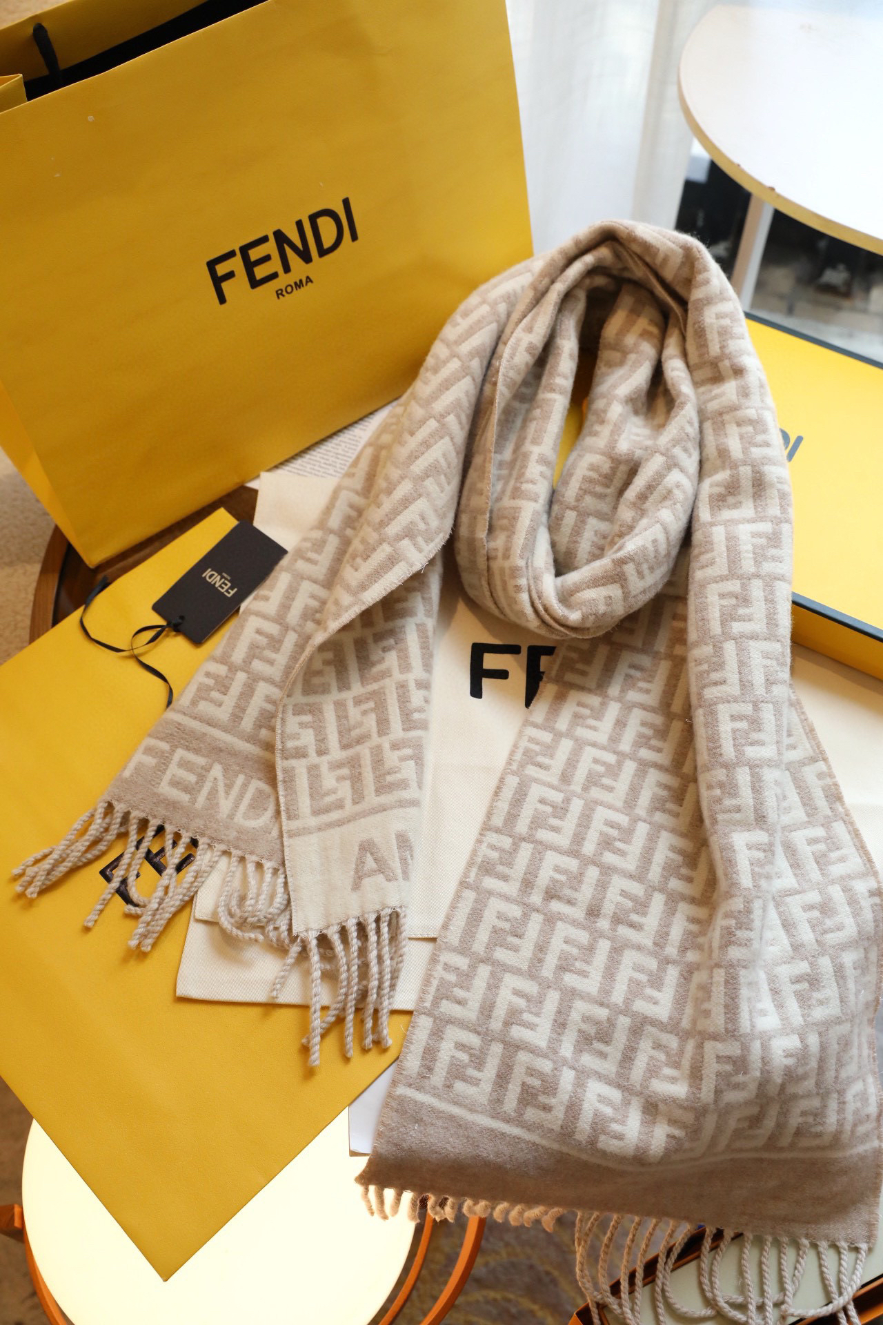 Fendi新款围巾-奶茶色