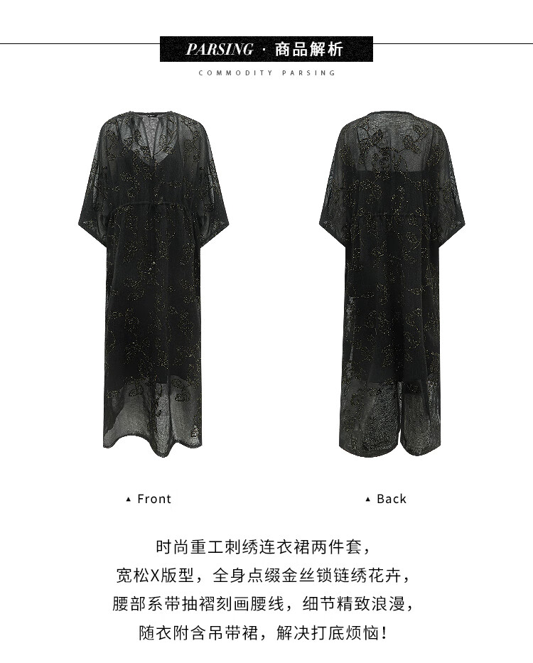 COCOBELLA[金葱刺绣]轻奢风刺绣肌理感连衣裙吊带裙两件装FR966
