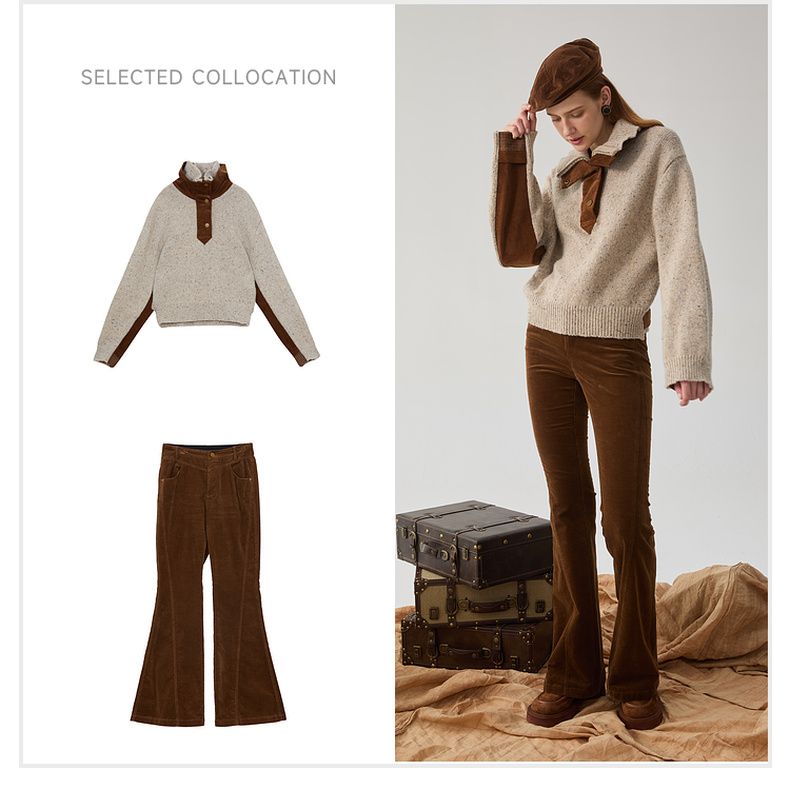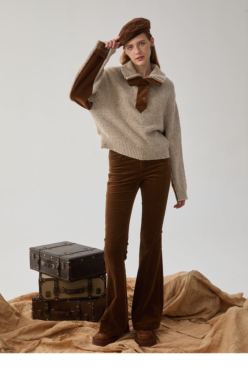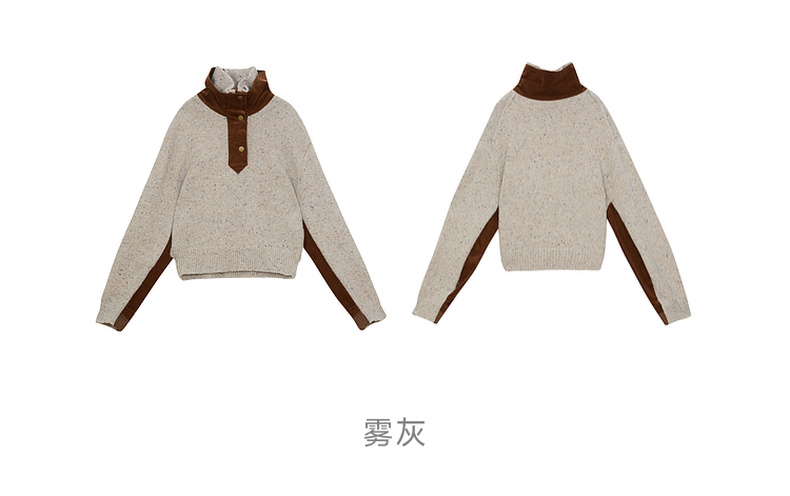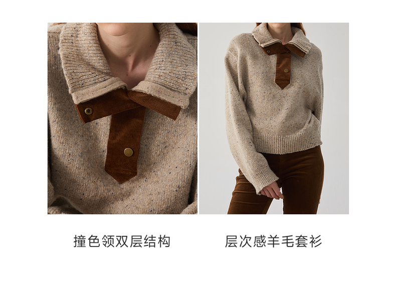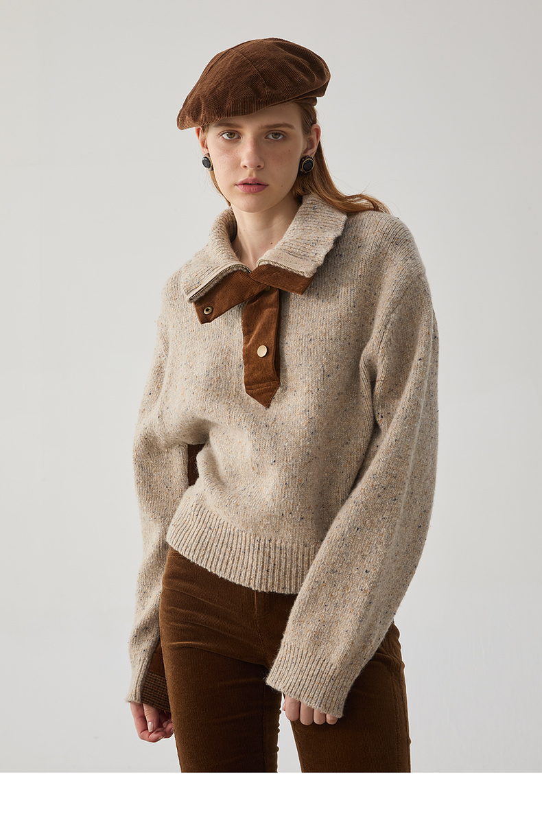 谜底套头针织衫女2024冬季新品百搭拼接式羊毛混纺毛衣244MZ1946