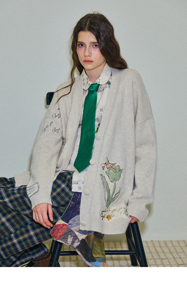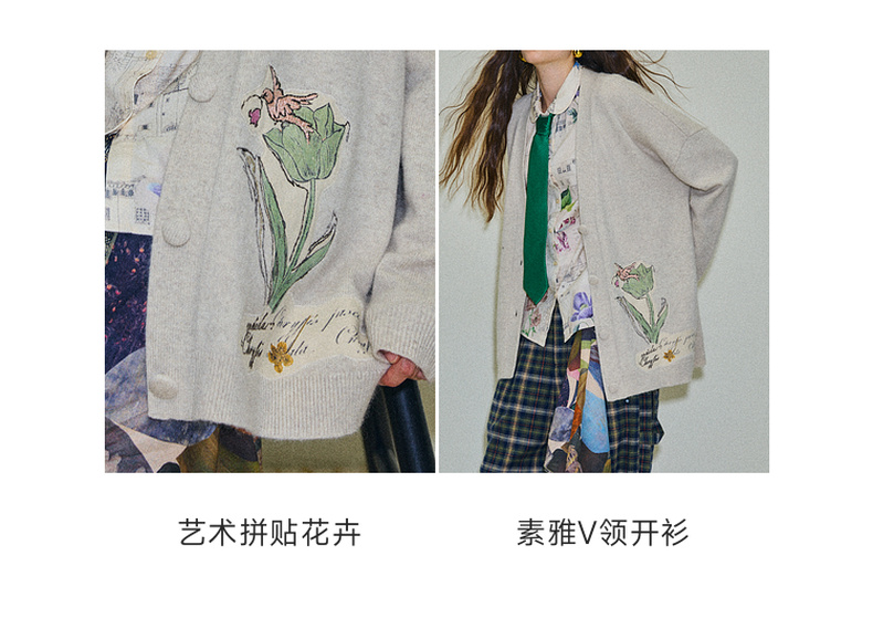 谜底针织开衫长袖2025冬季新品V领中长款亲肤保暖毛衣女254MZ1927