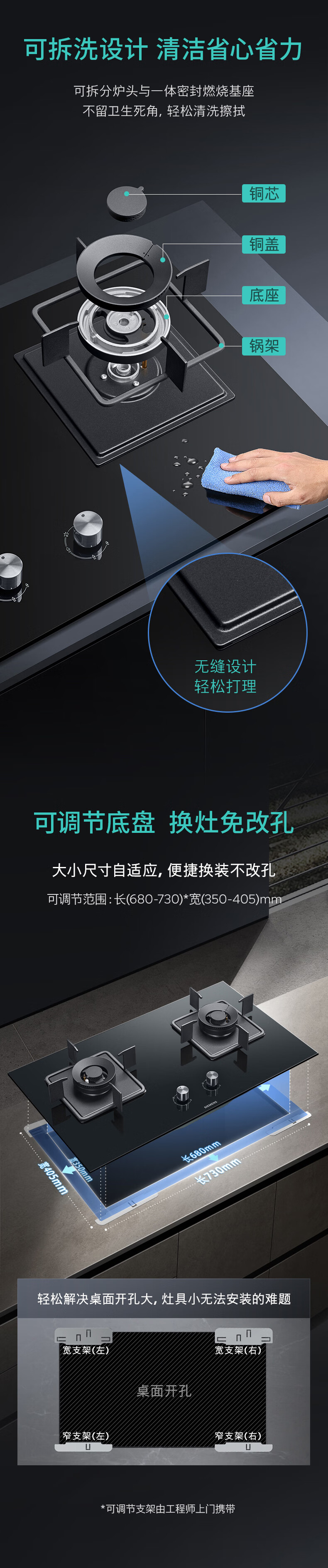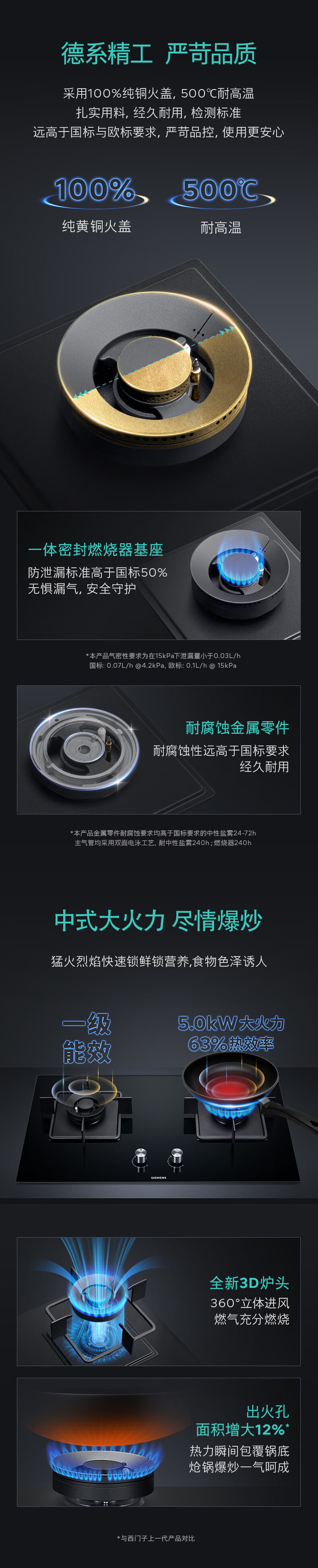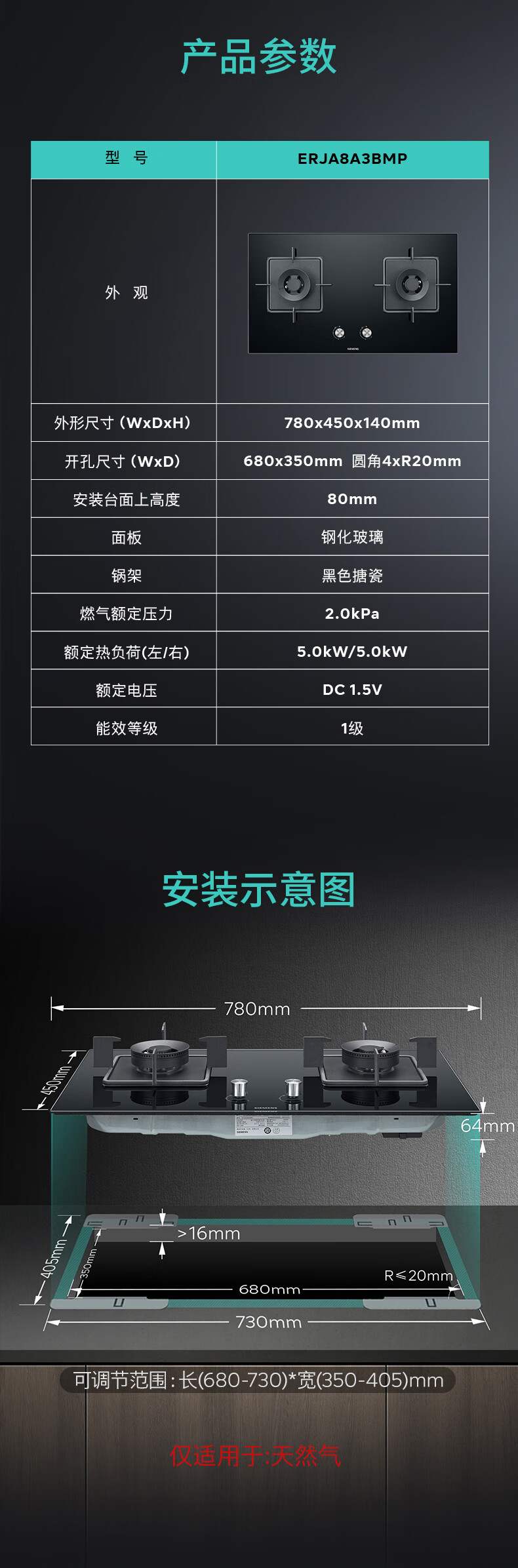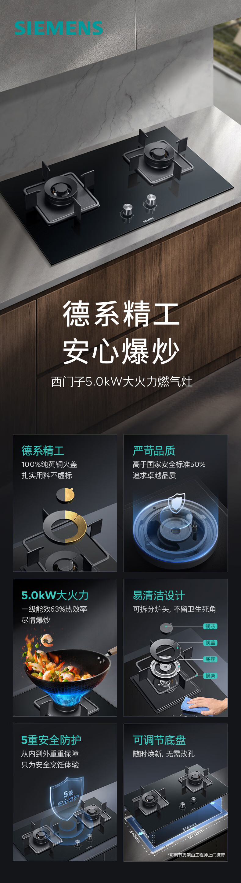 西门子(SIEMENS)【新品】西门子嵌入式燃气灶具5.0大火力家用双灶玻璃天然气ERJA8A3BMP