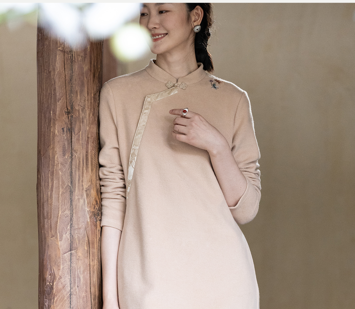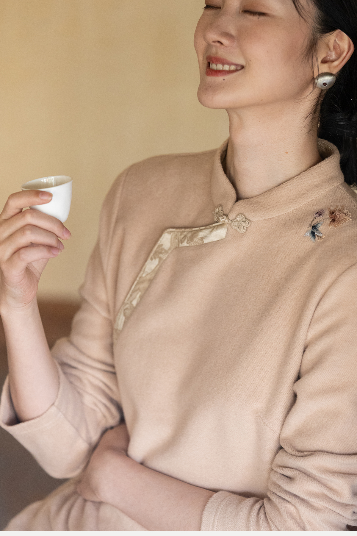 牧衣游原创 手工刺绣纯棉连衣裙柔软舒适宽松新中式改良旗袍 故里