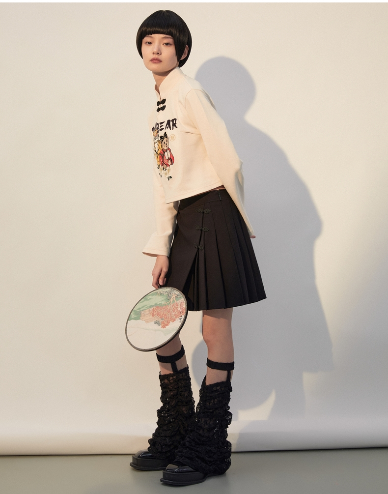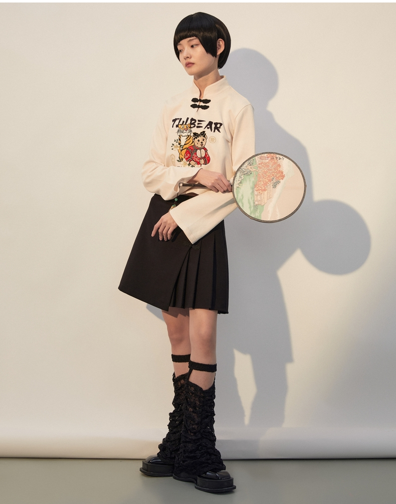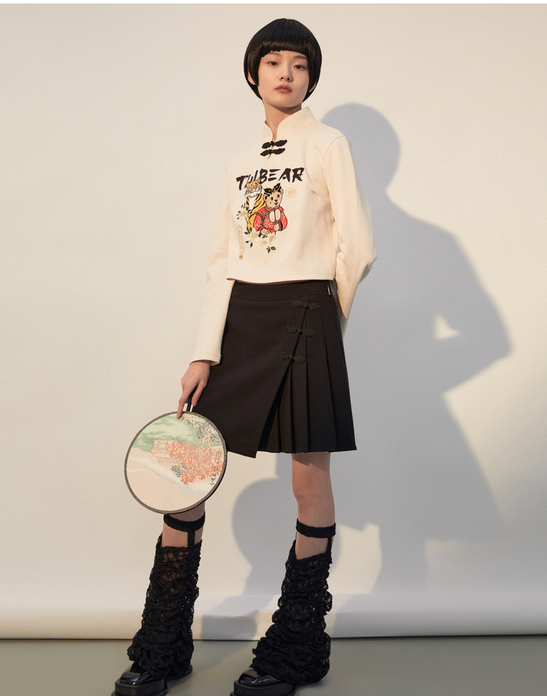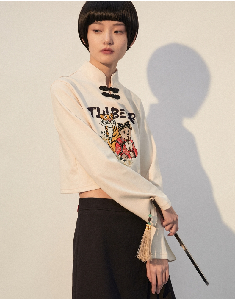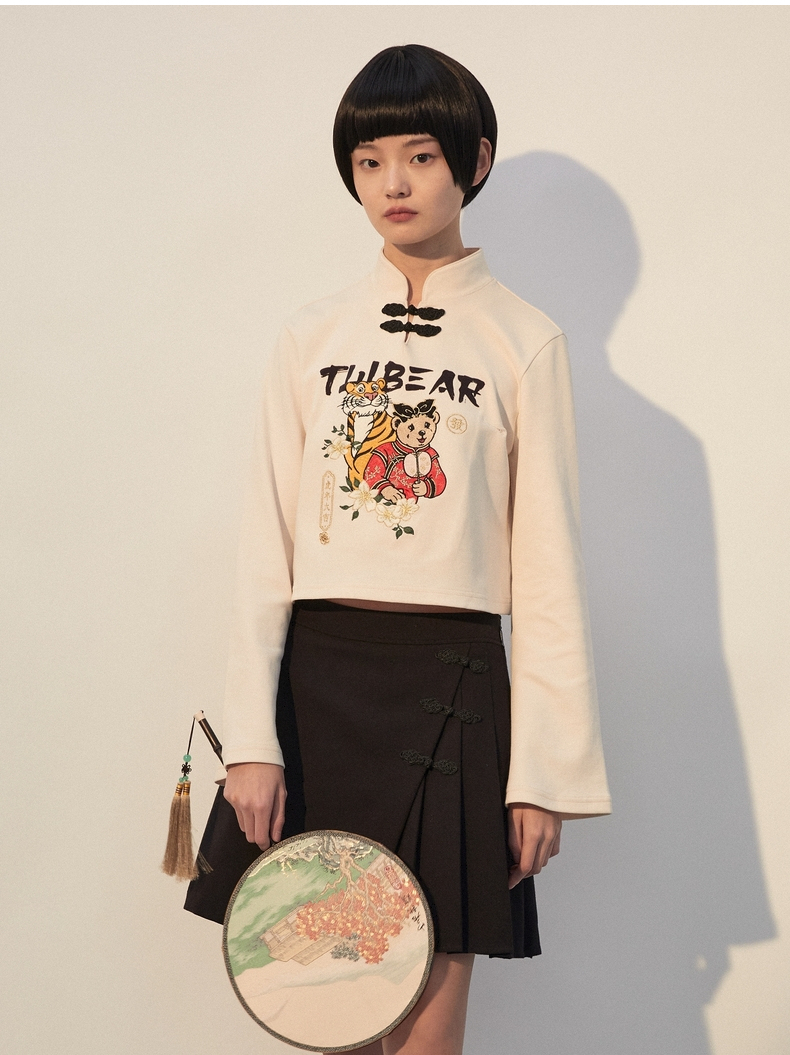 TeenieWeenie小熊2022春季新款半高领盘扣短款卫衣TTMA221103L