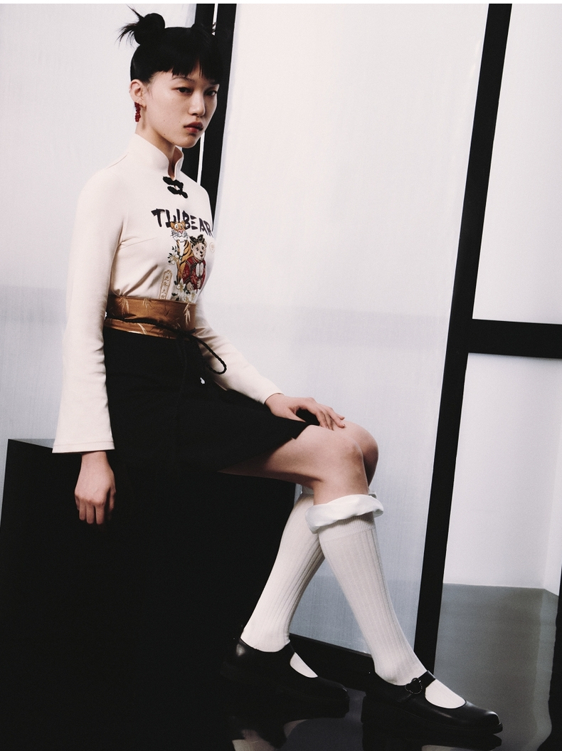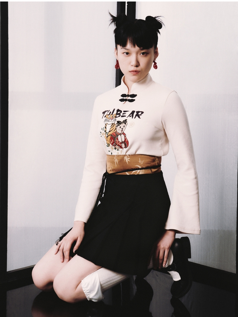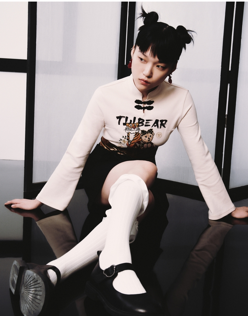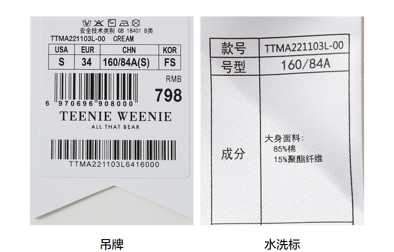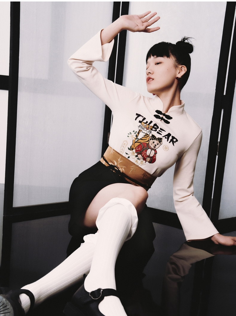 TeenieWeenie小熊2022春季新款半高领盘扣短款卫衣TTMA221103L