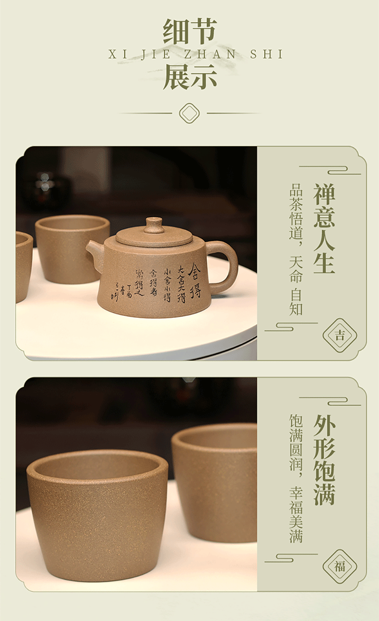【经典】宜兴井栏舍得紫砂壶套装(一壶两杯)