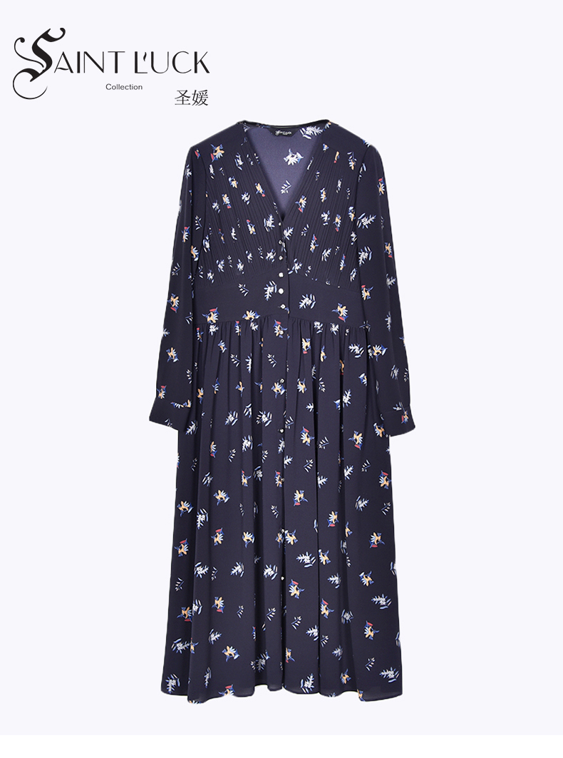 SAINT L’UCK/圣媛新款中长款印花雪纺连衣裙SA220L30