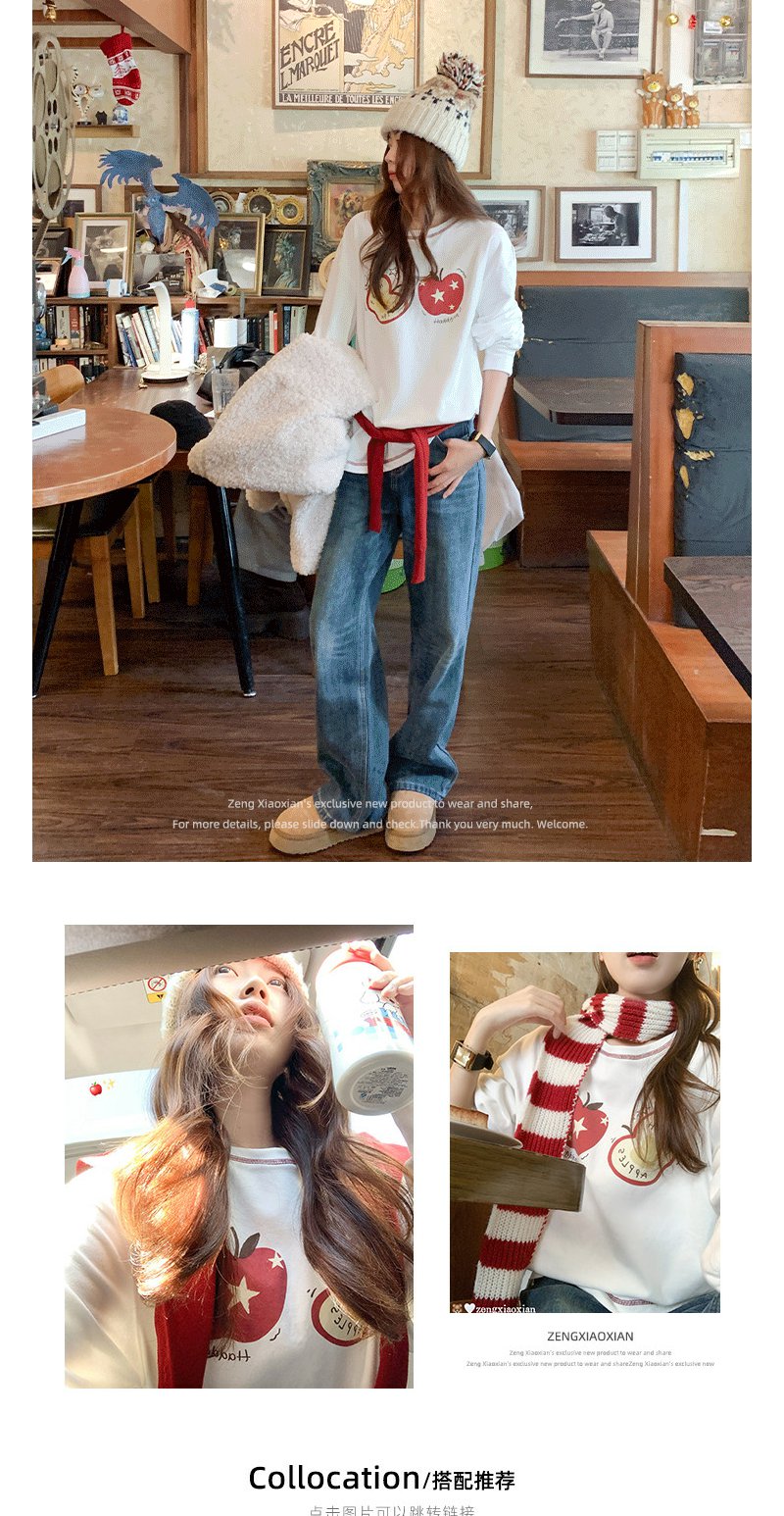 【110元任选2件】现货!韩系苹果印花加绒打底衫