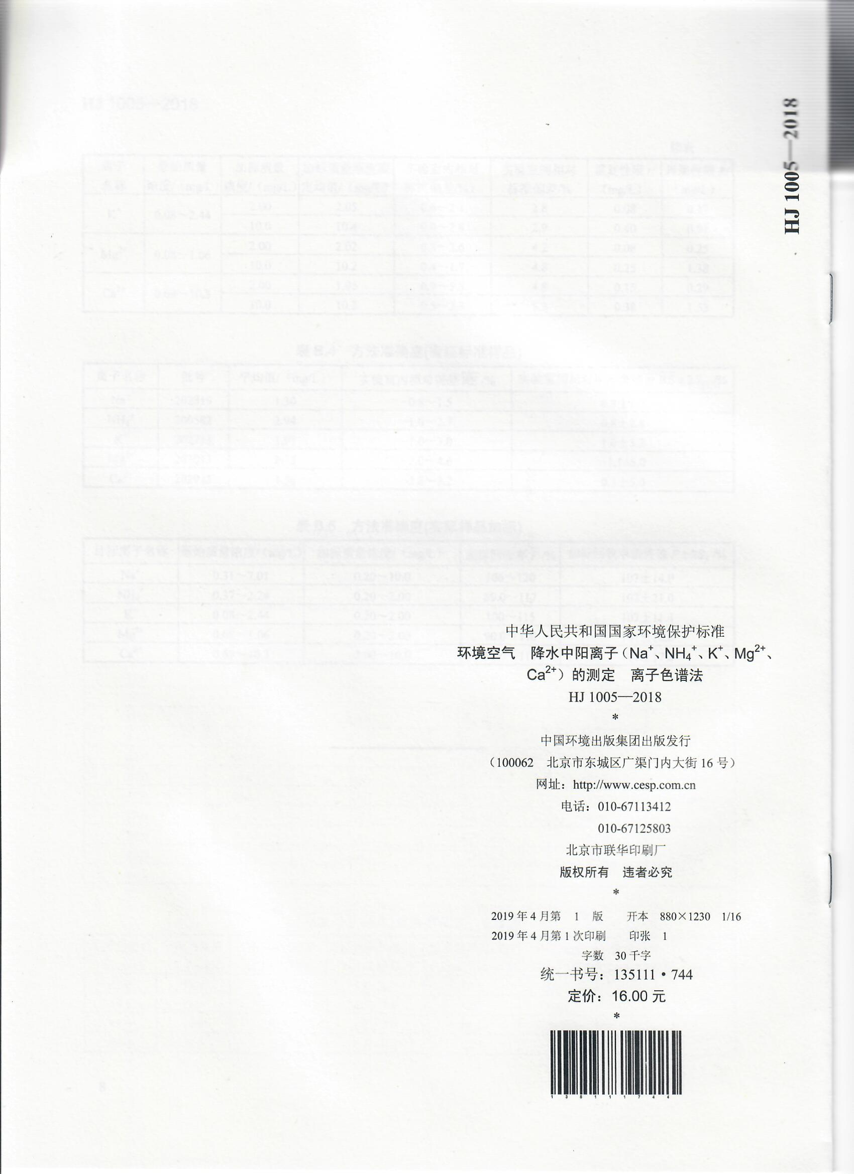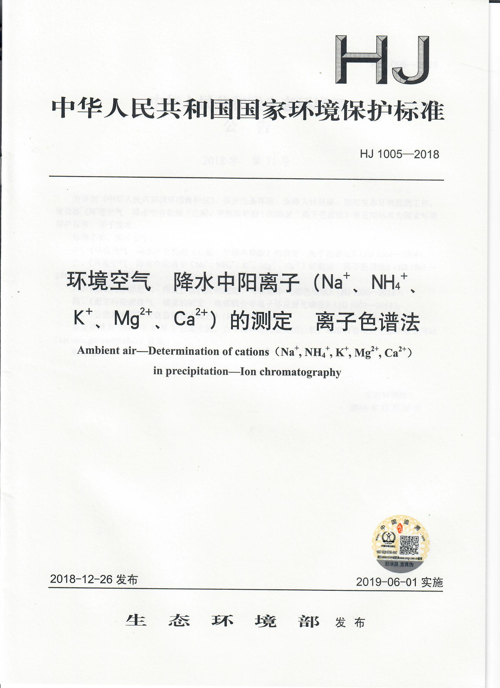HJ 1005-2018环境空气 降水中阳离子(Na+、NH4+、K+、Mg2+、Ca2+)的测定 离子色谱法 135111744