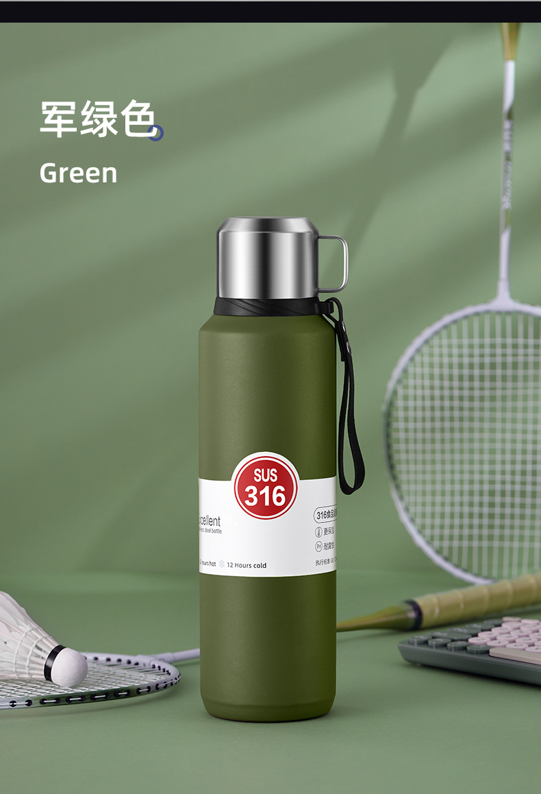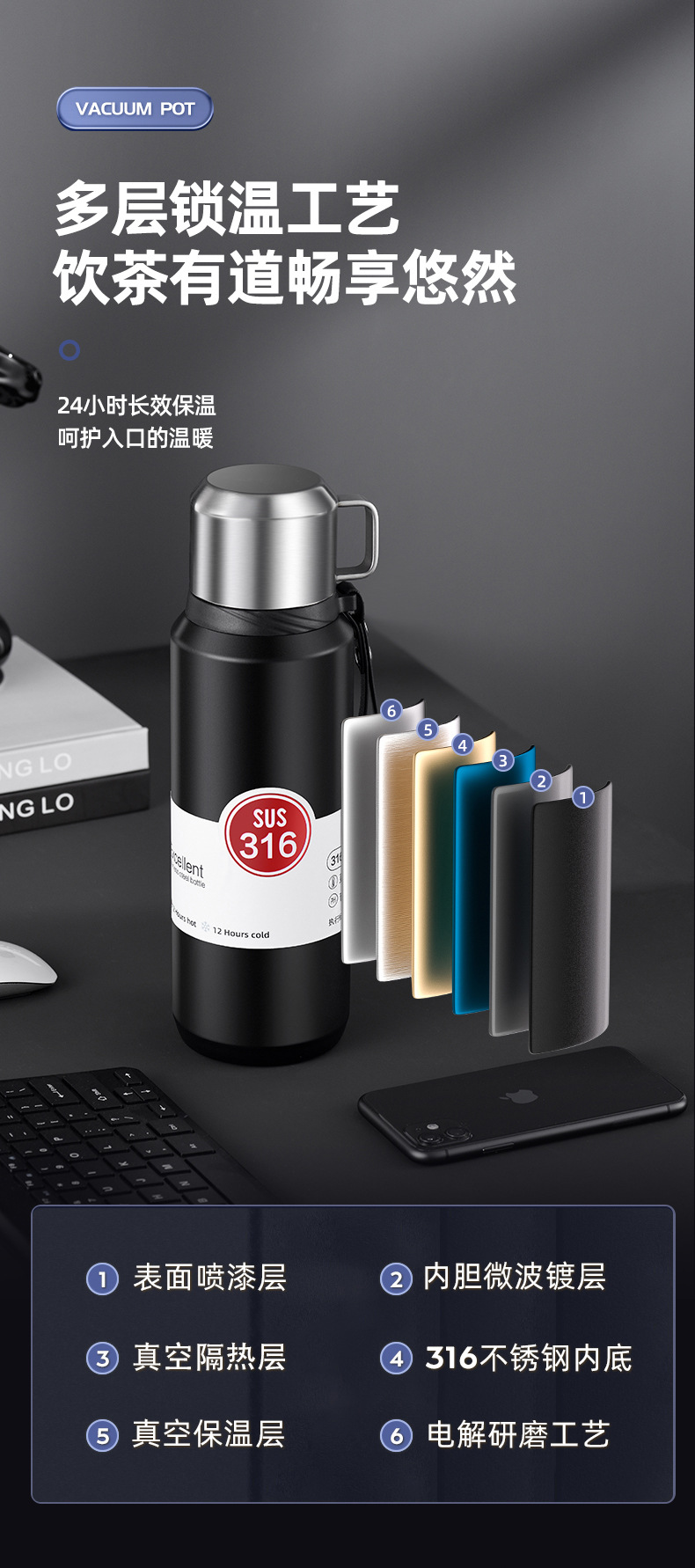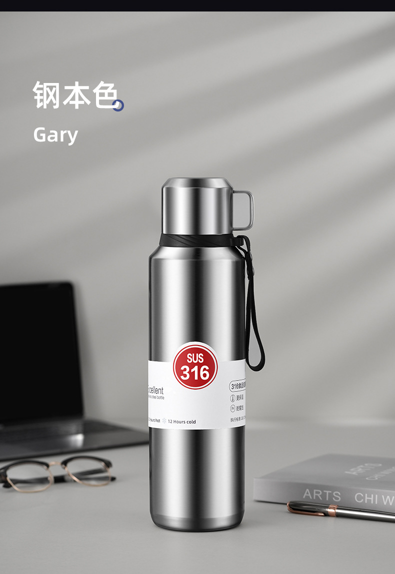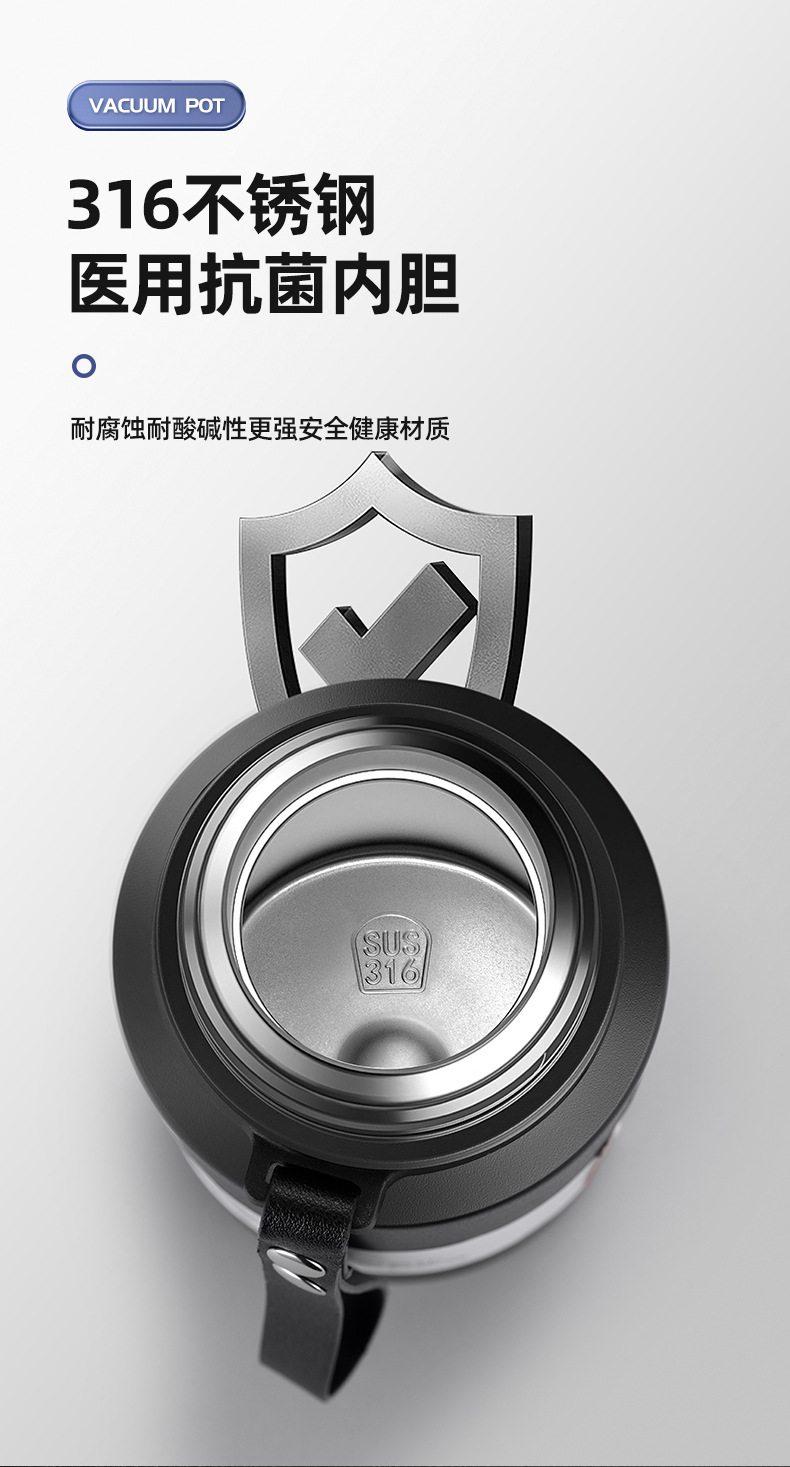 【全钢杯身 抗菌内胆 316保温壶】大容量316不锈钢全钢保温壶 男女士便携带提绳户外运动不锈钢水壶 旅行便携式大容量水壶
