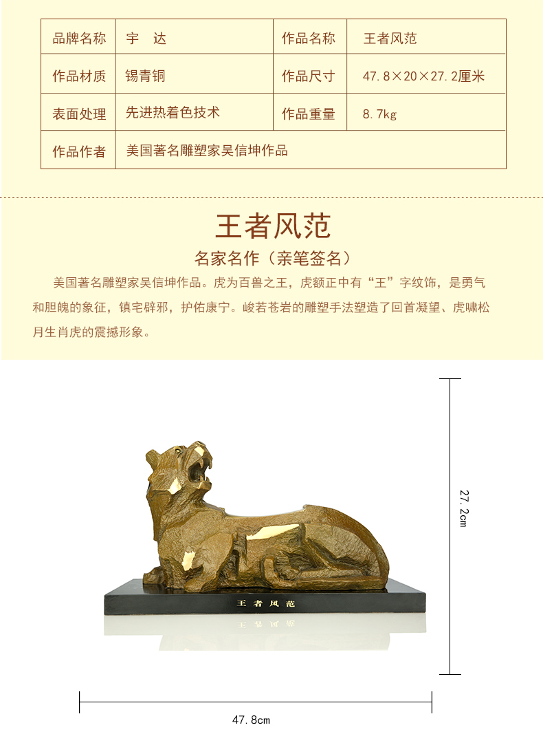 宇达青铜全铜虎摆件 《福临门》十二生肖 创意装饰 家居 工艺摆件 高32.4cm