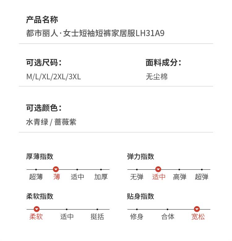 都市丽人凉感无尘棉薄短袖家居服睡衣LH31A9