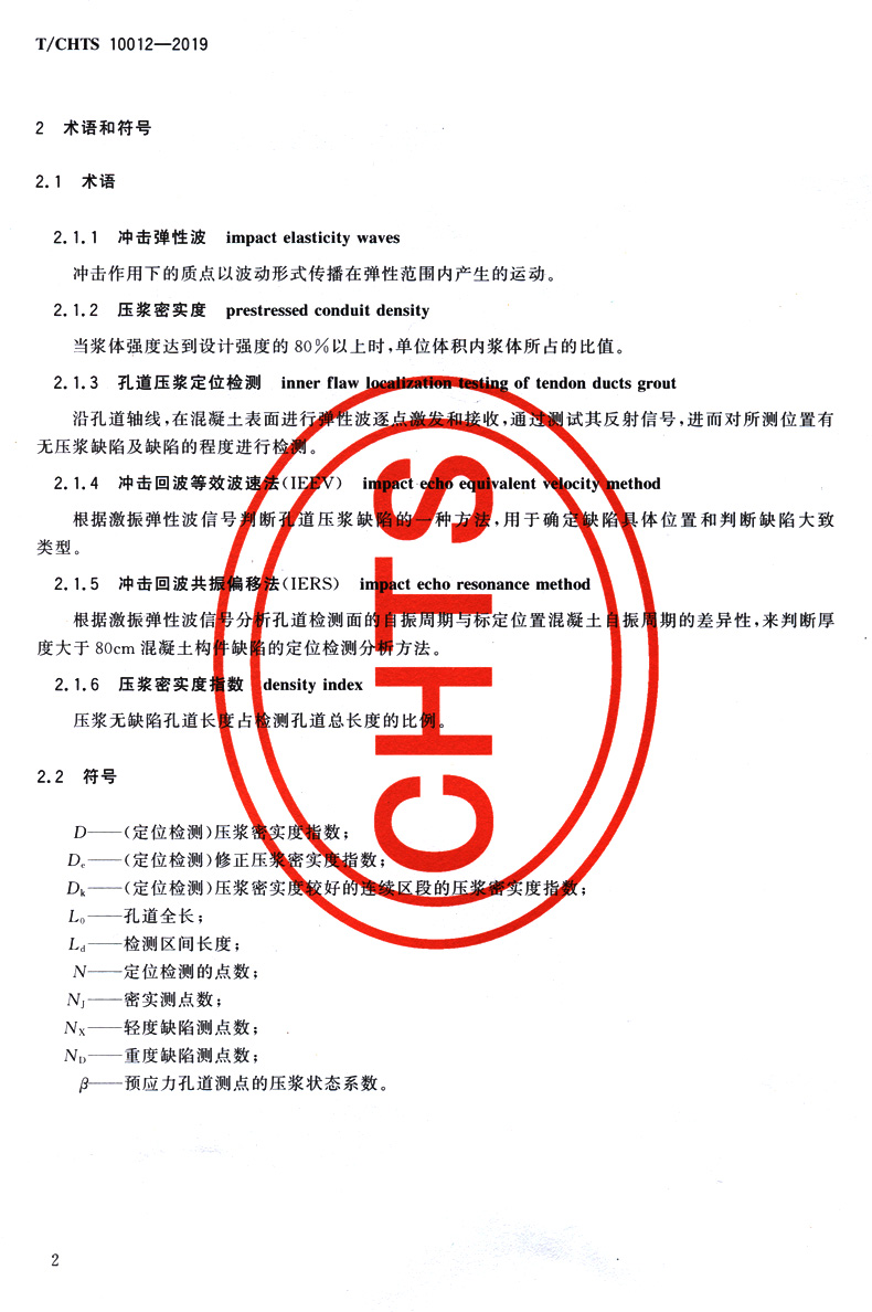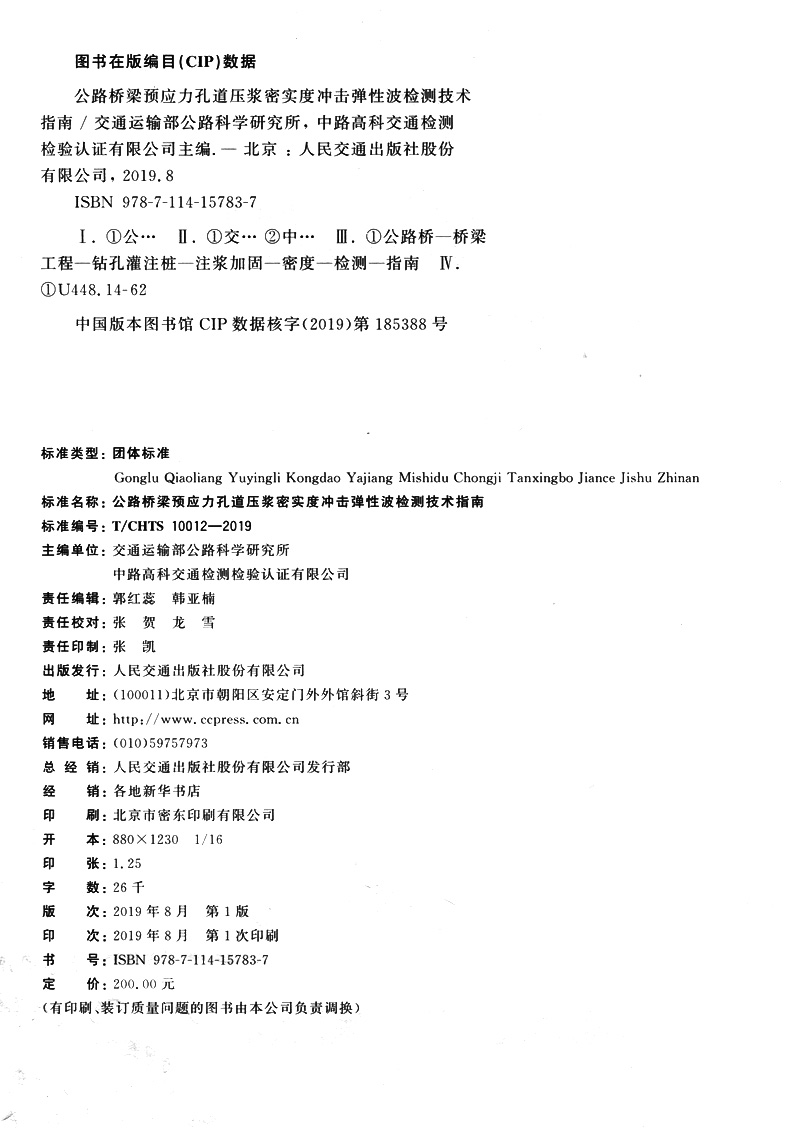 书名:公路桥梁预应力孔道压浆密实度冲击弹性波检测技术指南(T/CHTS 10012—2019)