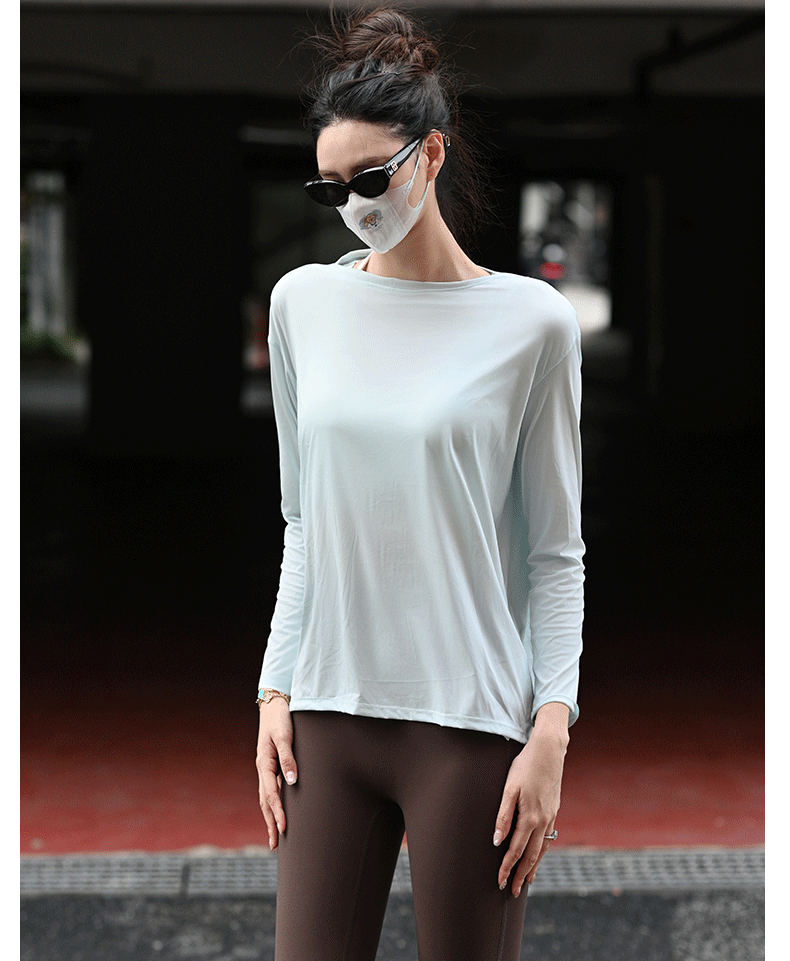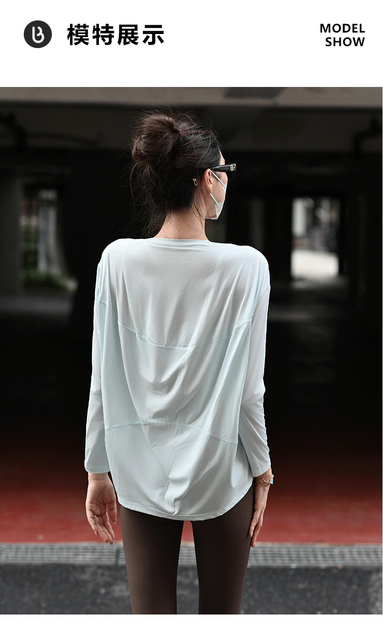 Beemen宽松长袖运动上衣女 轻薄透气不闷汗速干宽松遮肉 瑜伽跑步休闲罩衫