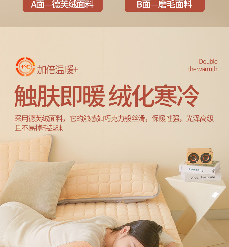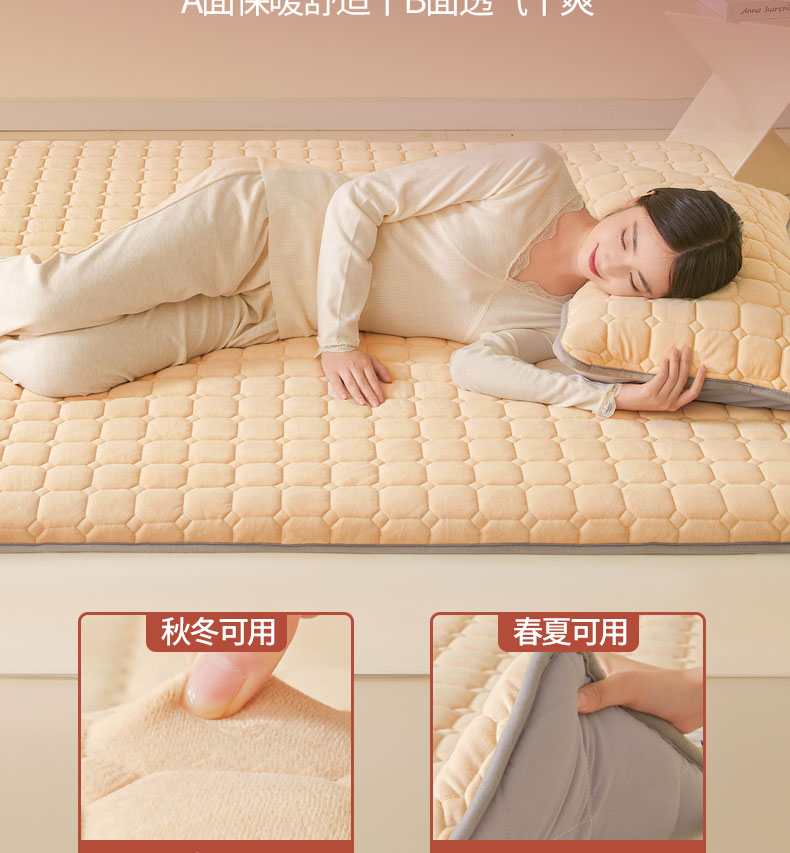 自然醒德芙绒记忆棉两用5厘米床垫垫子LN
