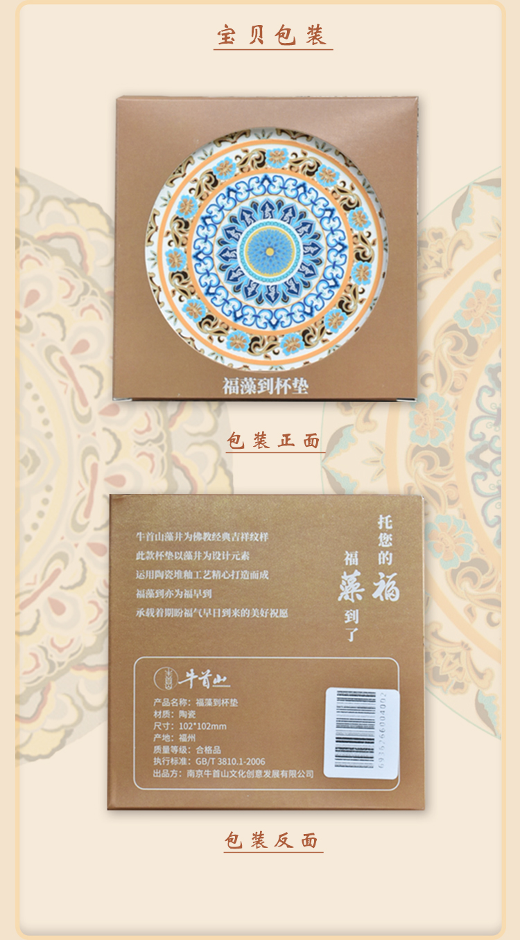 牛首山文创福藻到福运杯垫茶道隔热垫南京纪念品复古耐用定制家用