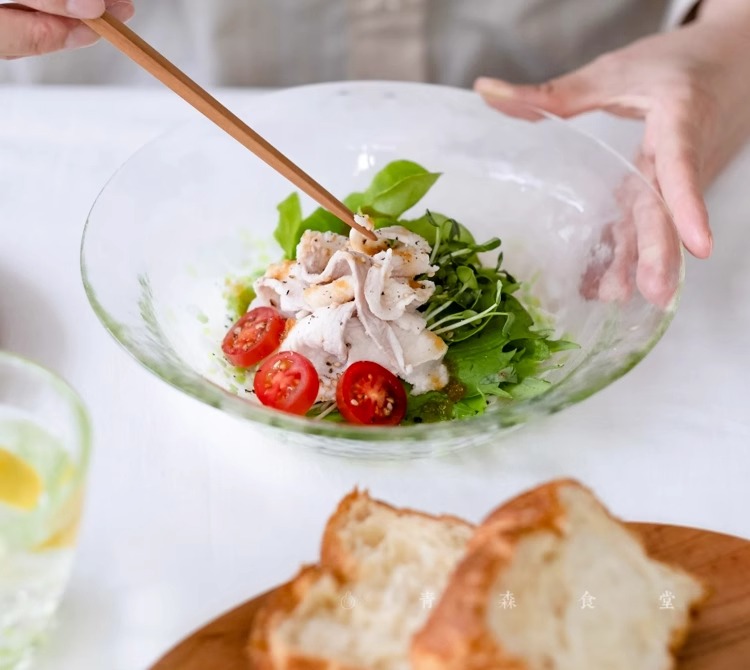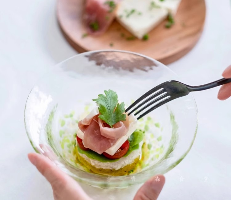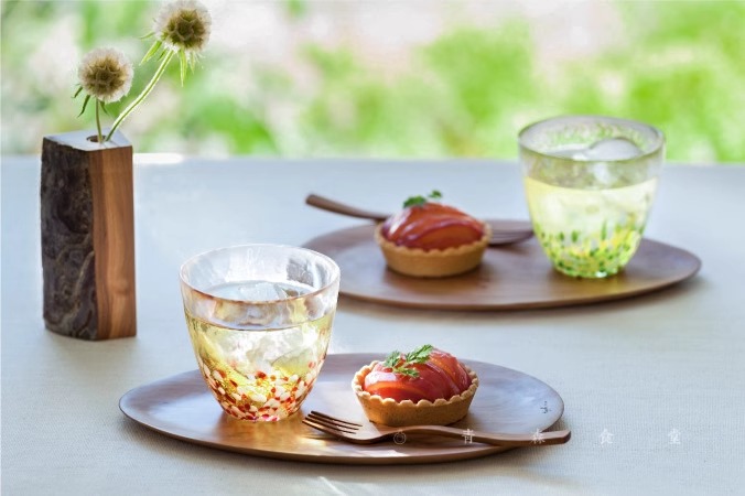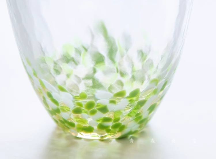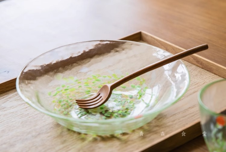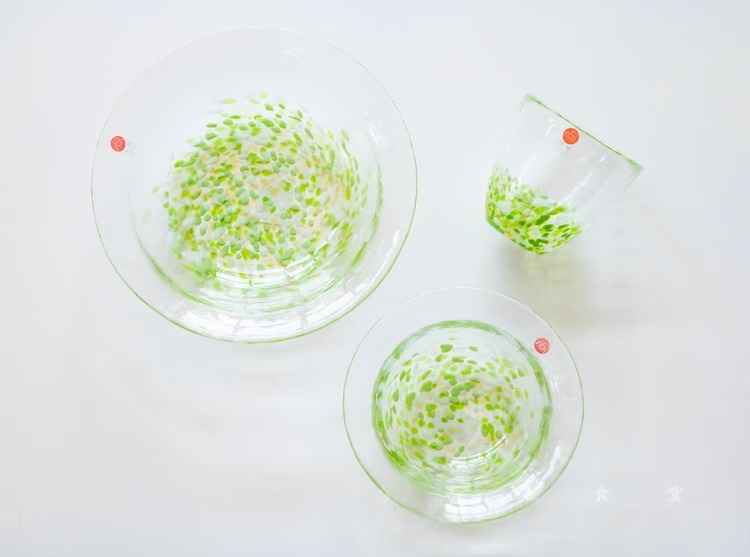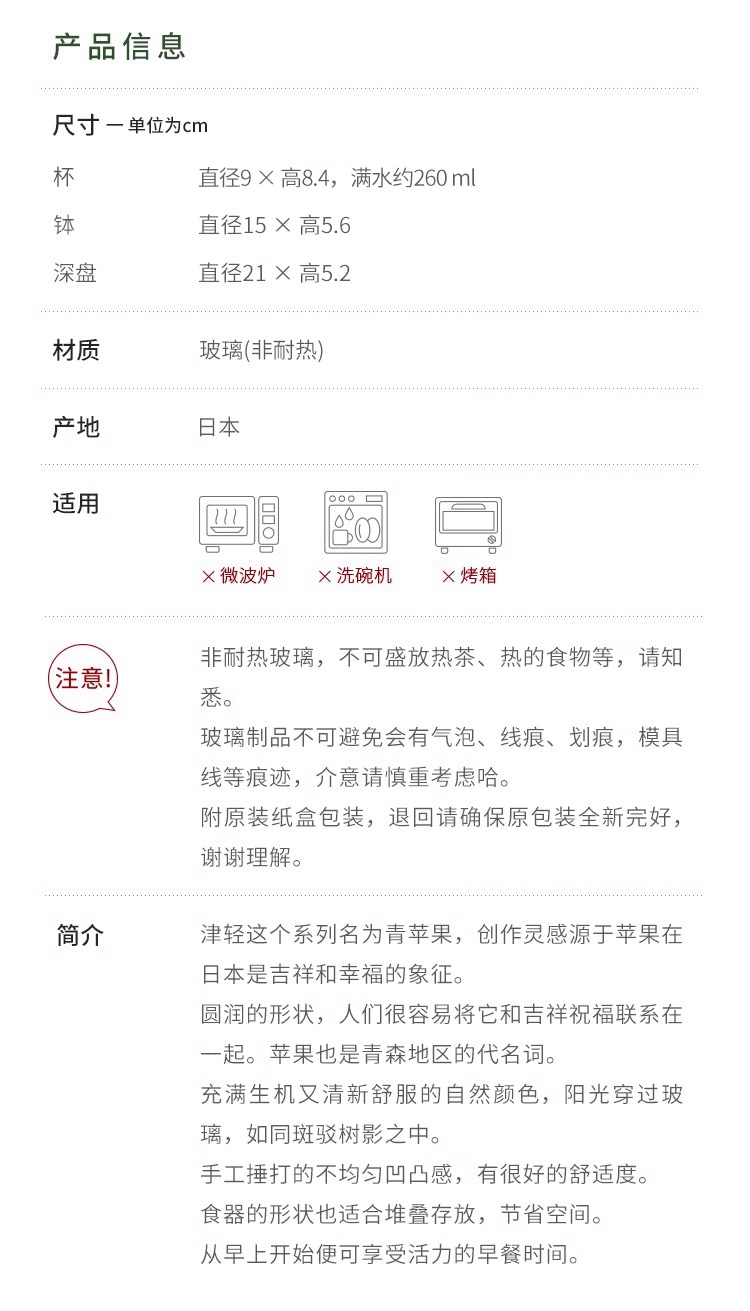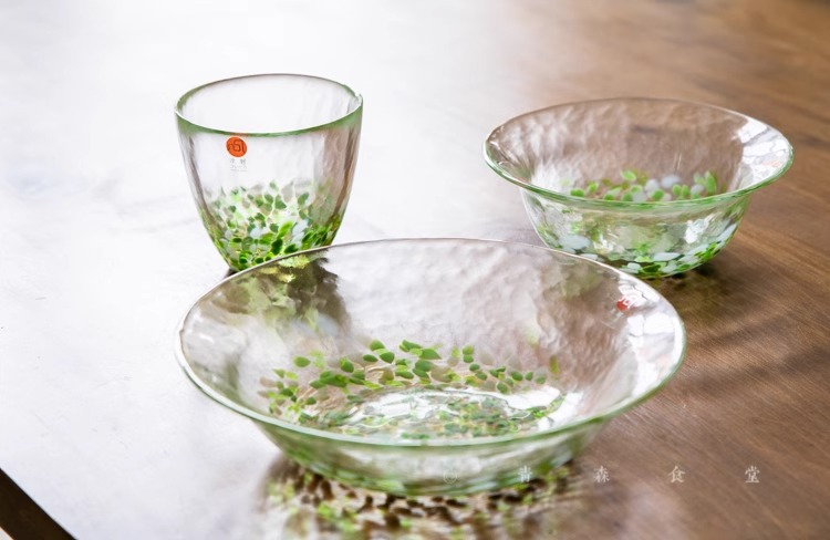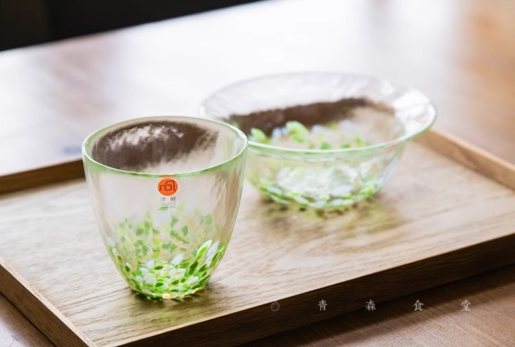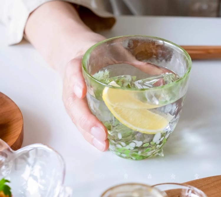 日本制Aderia津轻清新夏日青苹果玻璃杯甜品钵水果盘