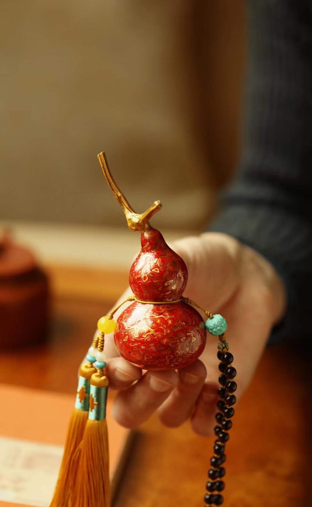 选取天然葫芦,手工髹大漆,