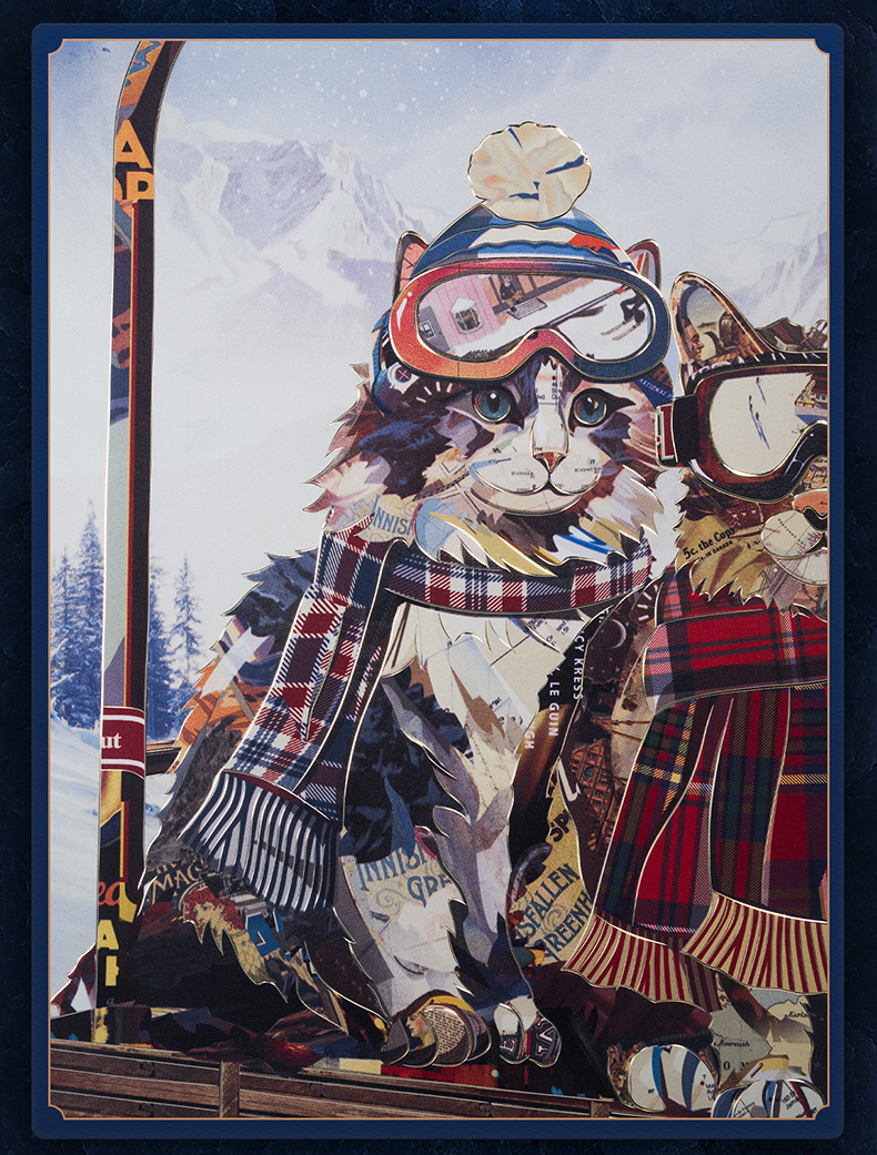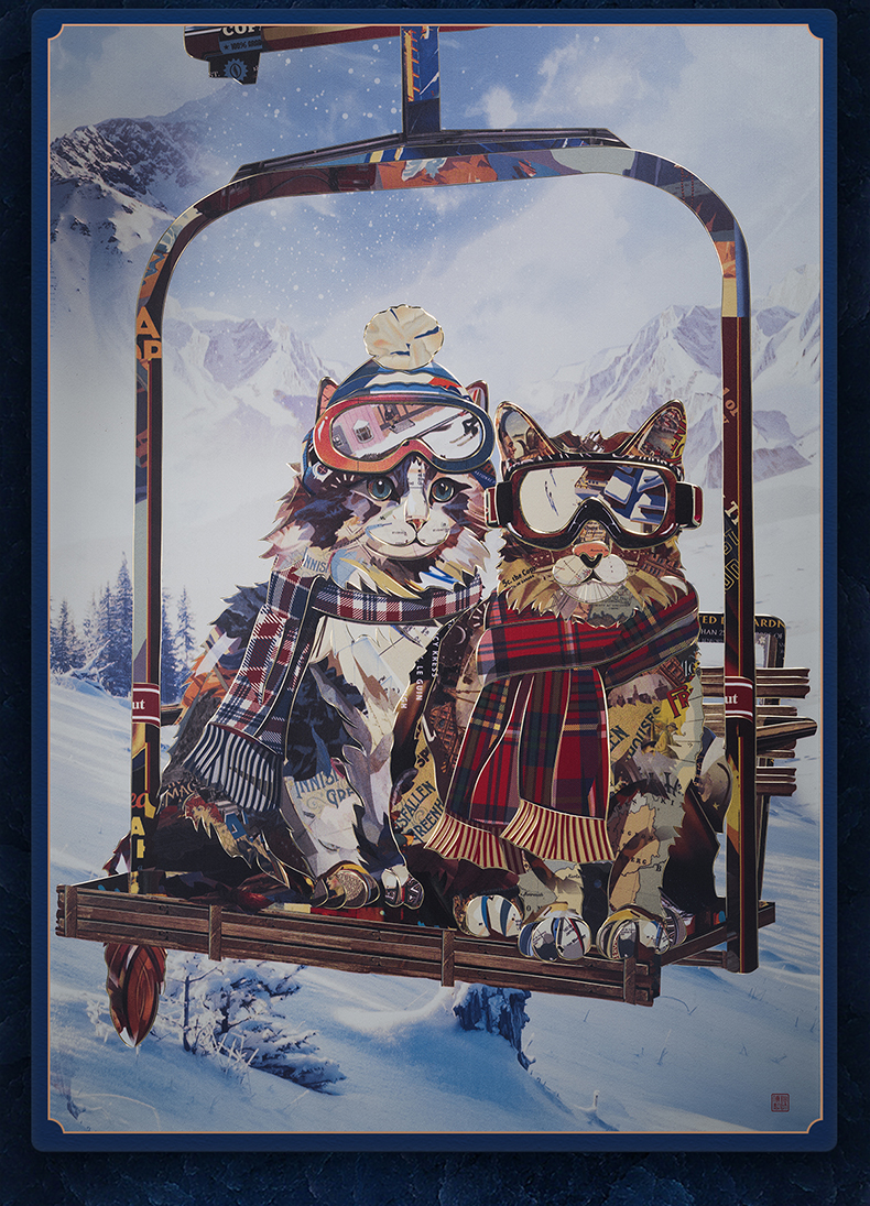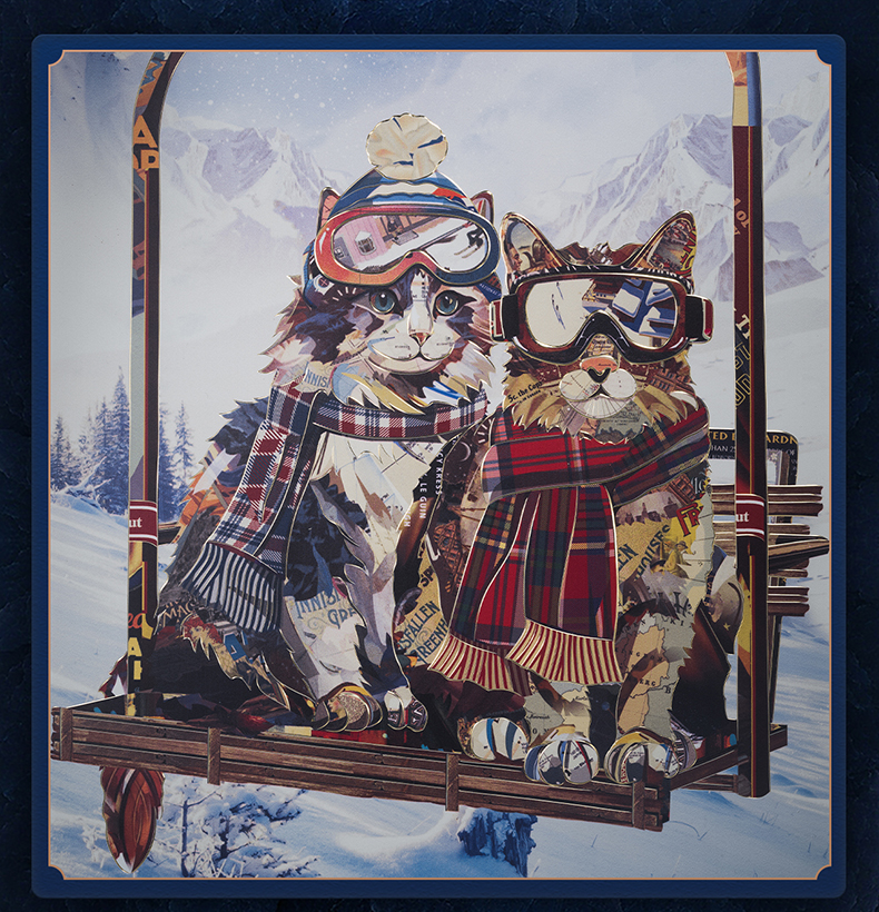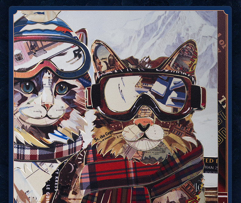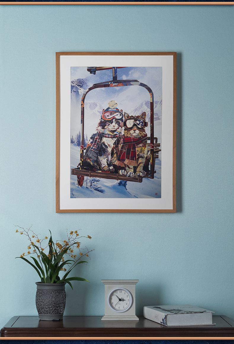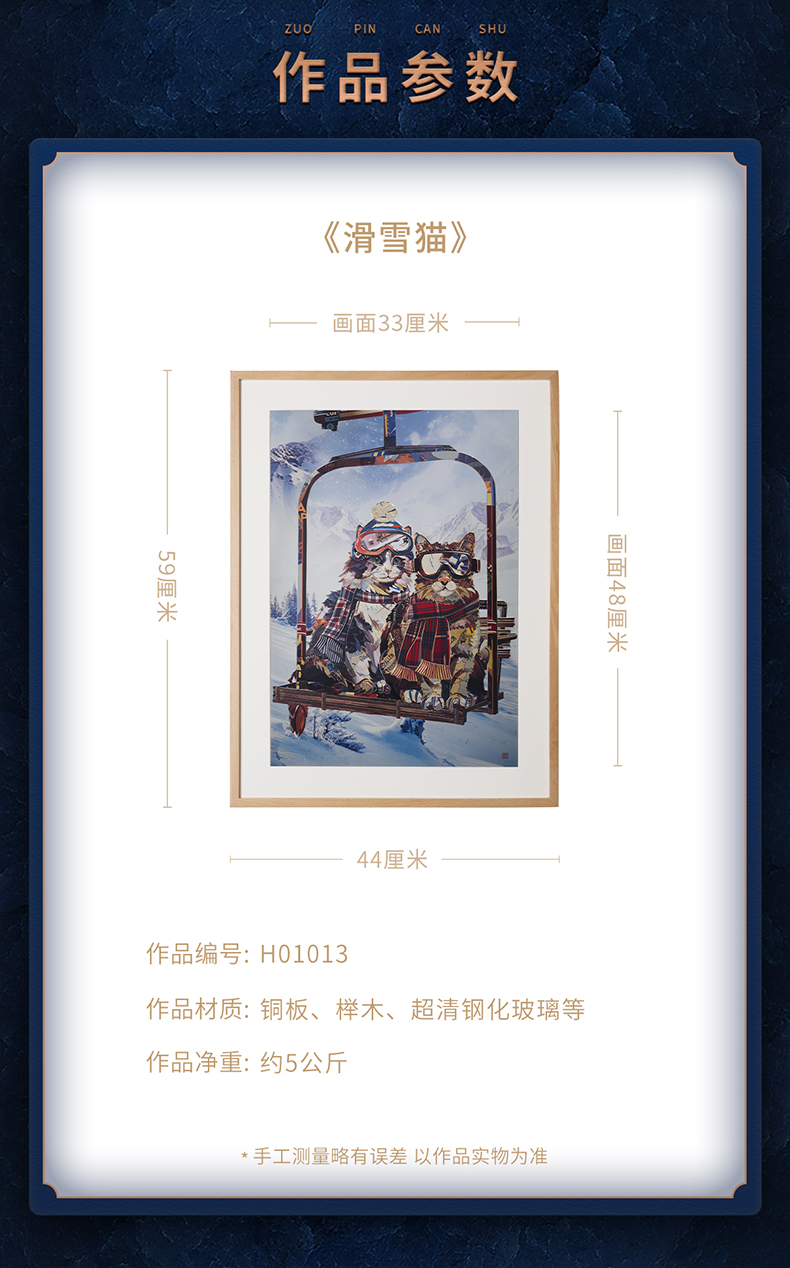 铜师傅 手工錾刻 铜雕画《滑雪猫》客厅玄关画沙发背景墙装饰画