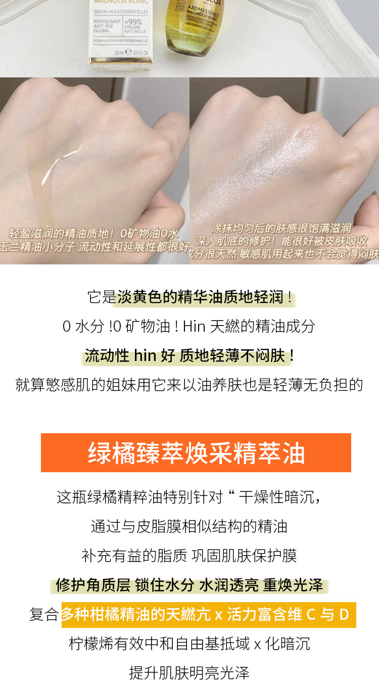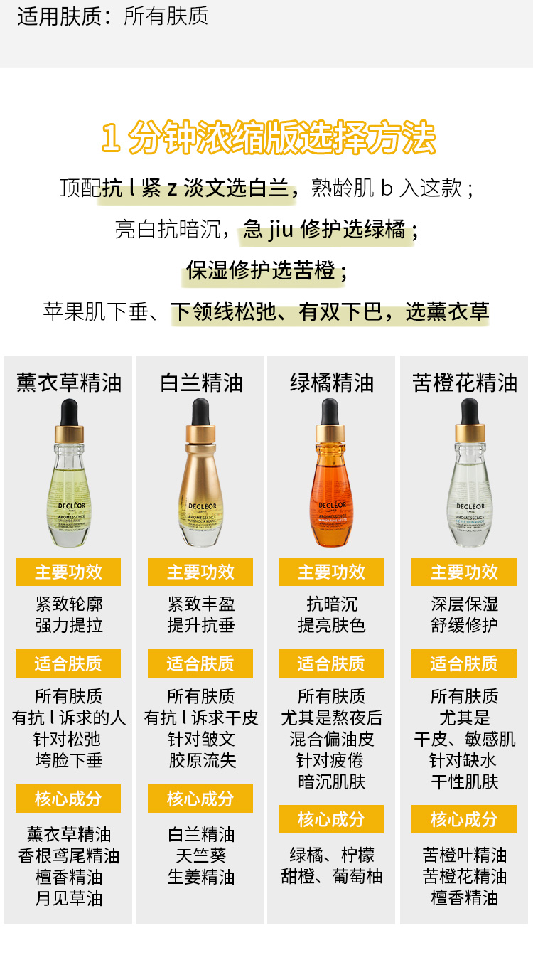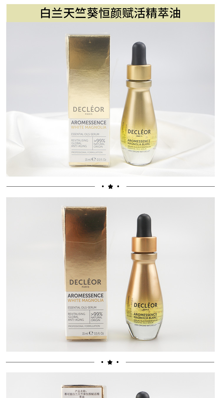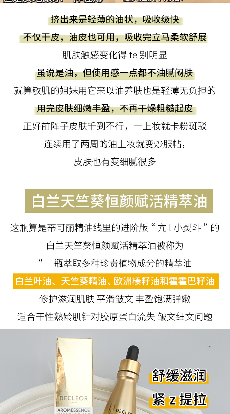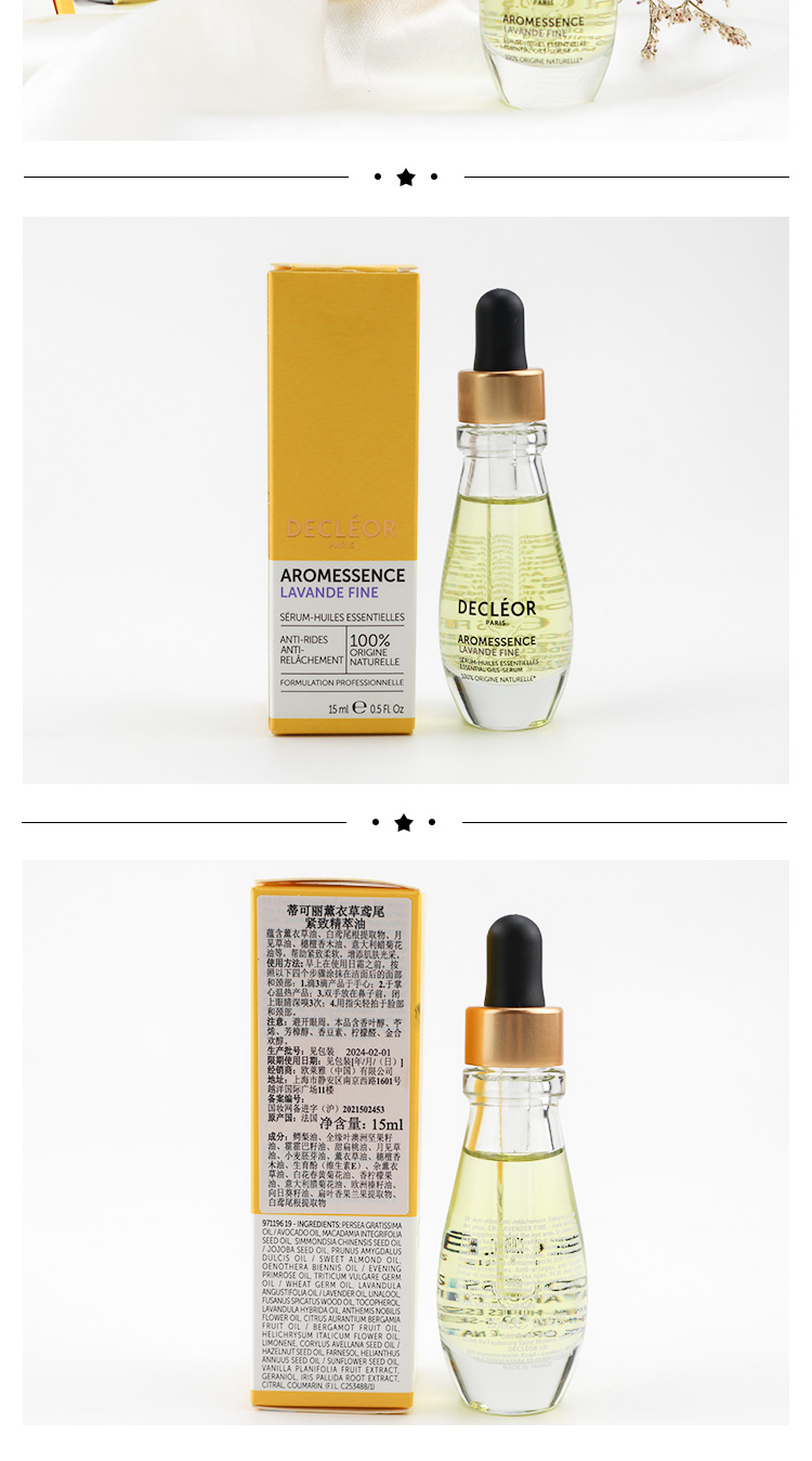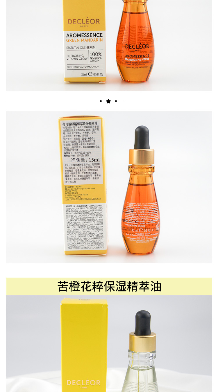 蒂可丽薰衣草/绿橘/苦橙花/白兰 保湿焕彩紧致赋活精萃油精油 15ML
