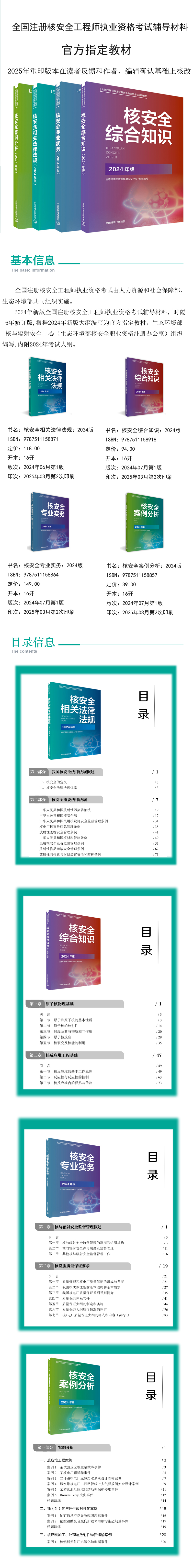 2025核改并重印 2024新版 生态环境部核安全职业资格考试系列教材-核安全相关法律法规 核安全综合知识 核安全专业实务 核安全案例分析 官方指定教材