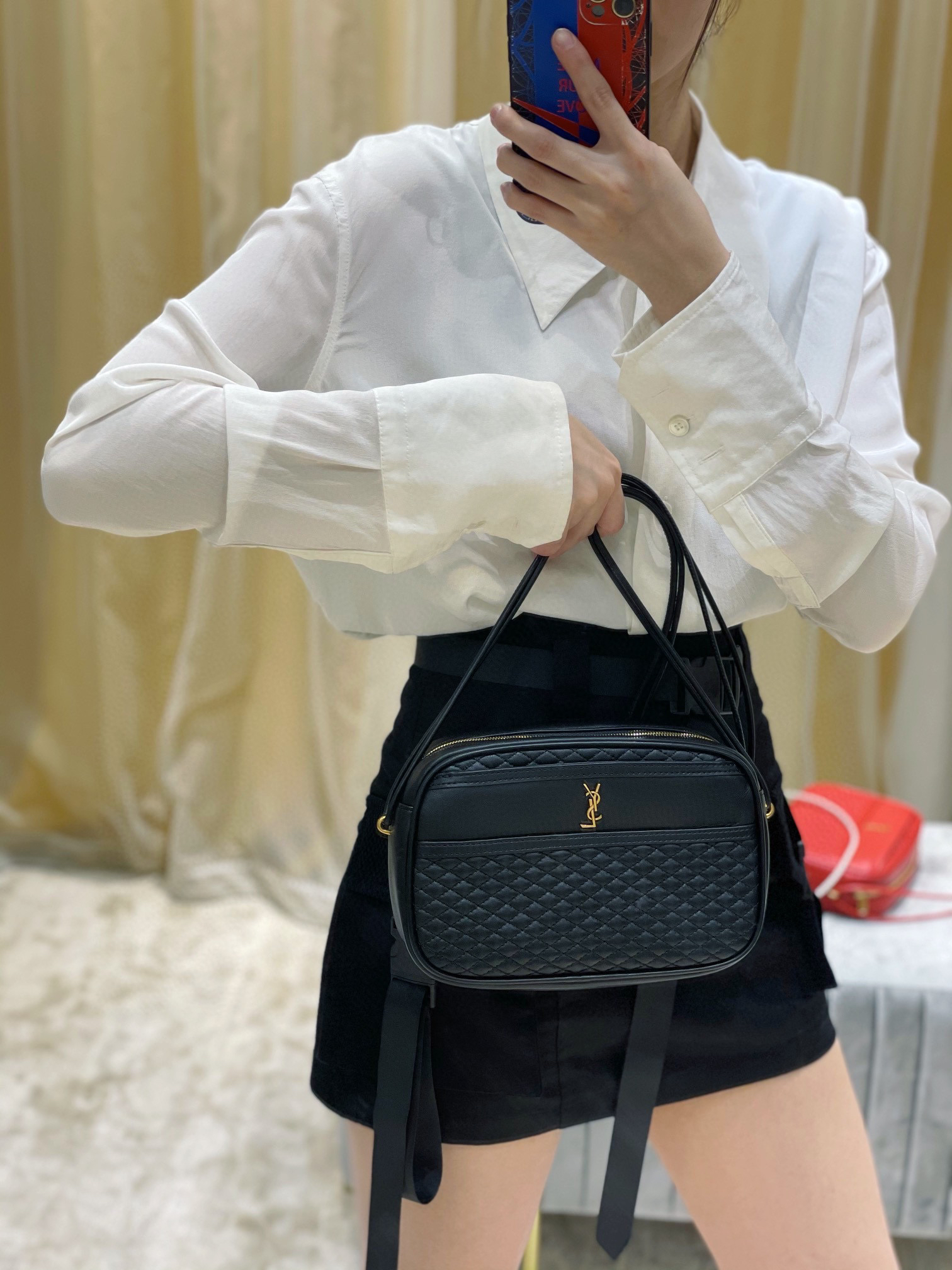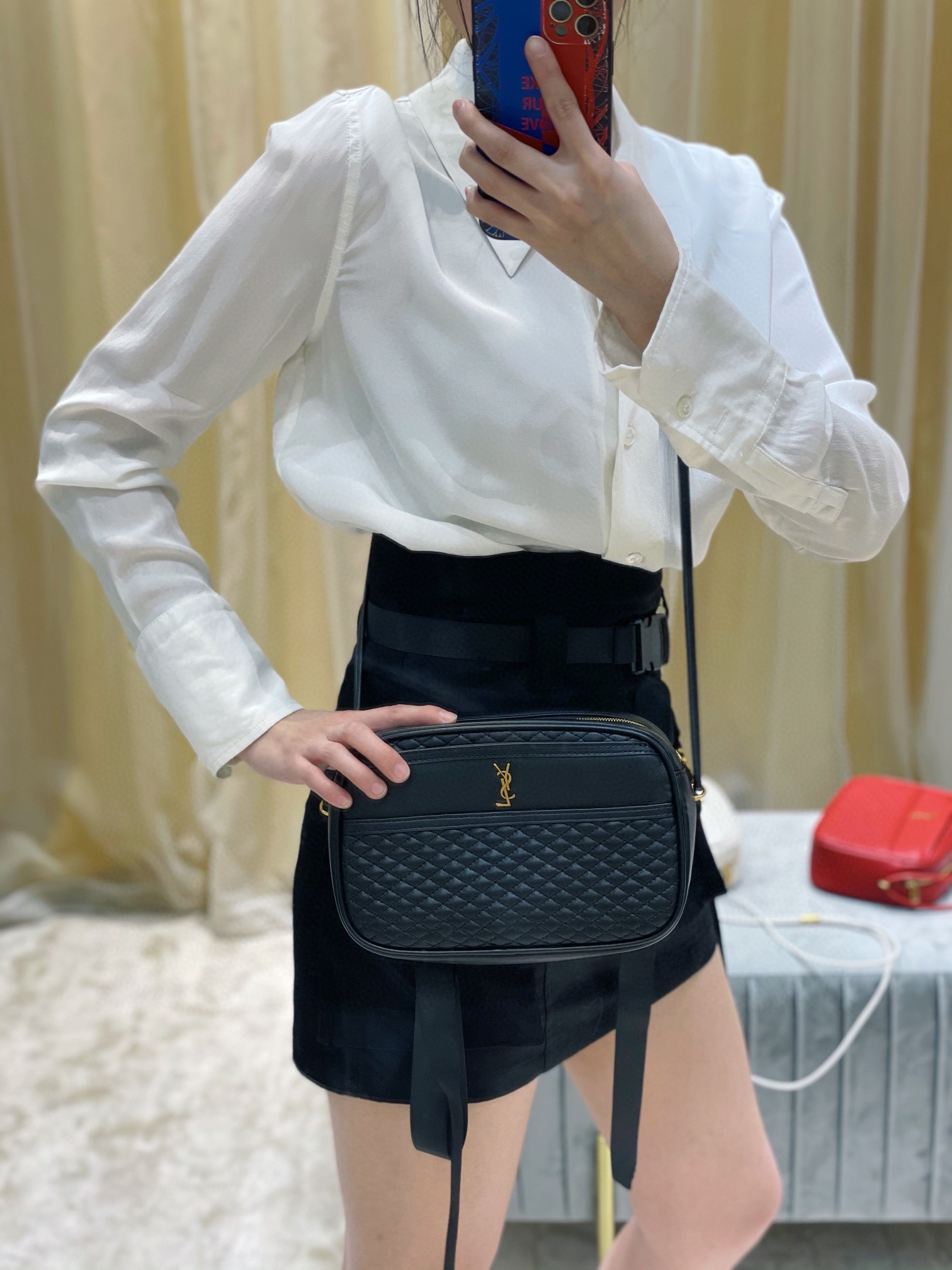 2021春季新品Y家菱格相机包,选用优质进口小羊皮,手感柔软而又细腻,搭配菱格绗缝工艺,整体散发出复古又休闲的感觉;缩小了的品牌logo使得整个包都更低调内敛;大开口的开合拉链设计,方便容纳更多的物品;最特别的是双绳子叠合肩带,摒弃了传统五金配饰,大大的减轻了包包的重量,使得它包身自重几乎可以忽略不计,出门轻装上阵的感觉简直不要太爽了!p750