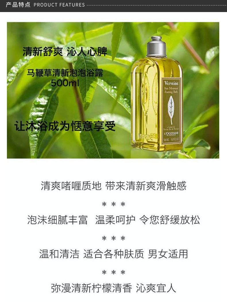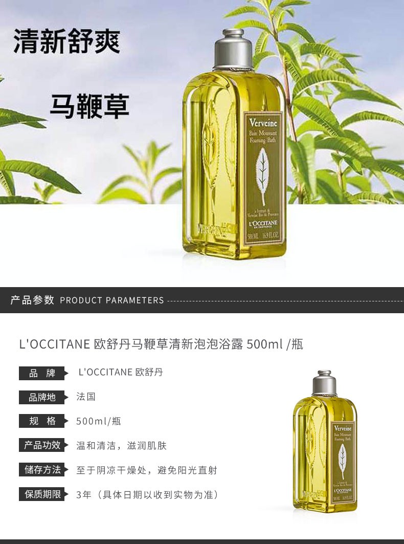 L'OCCITANE 欧舒丹 马鞭草泡泡浴露 500ML 法国
