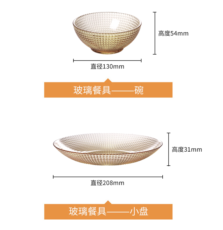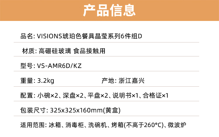 【自营】 康宁 琥珀色晶莹小碗/深盘/平盘 高硼硅玻璃 坚固耐用