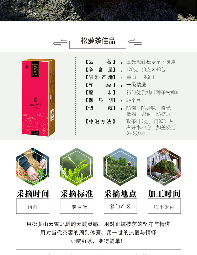 王光熙2025新茶正宗祁门鲜叶红茶一级精选灵犀红茶小包120g茶叶伴手礼